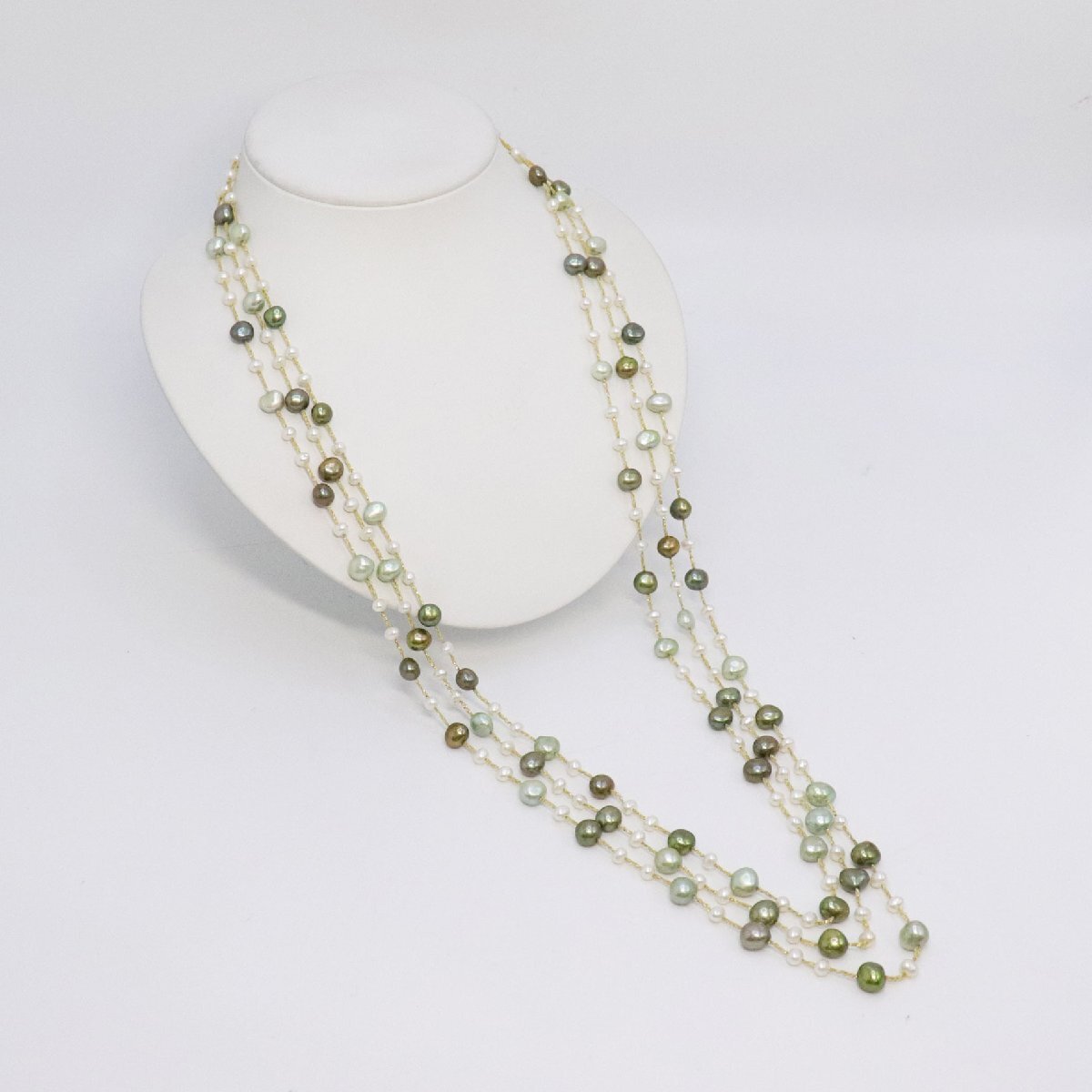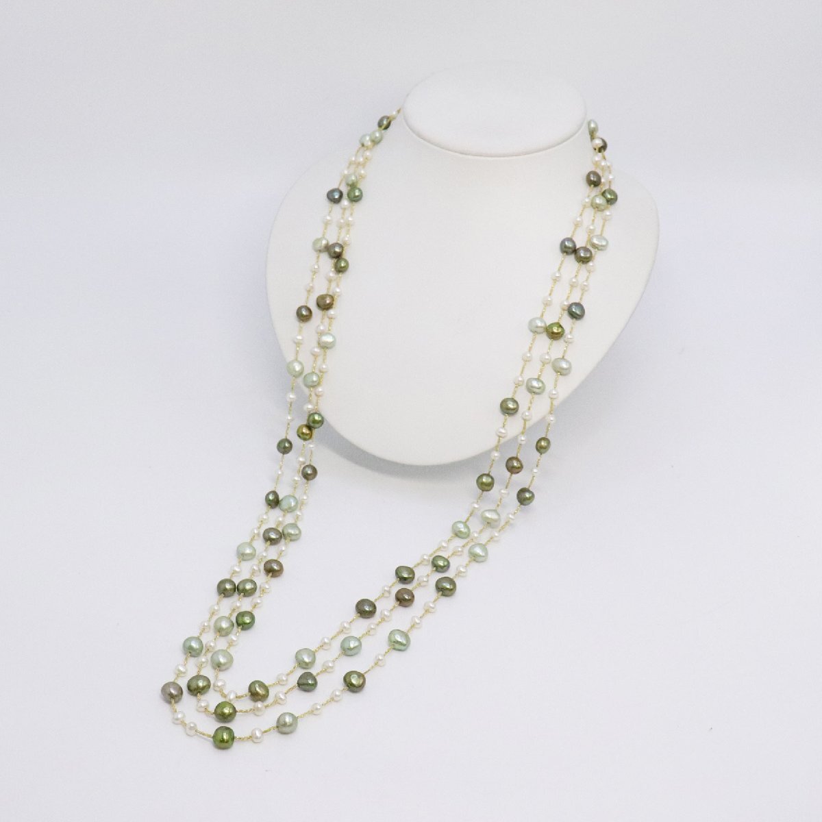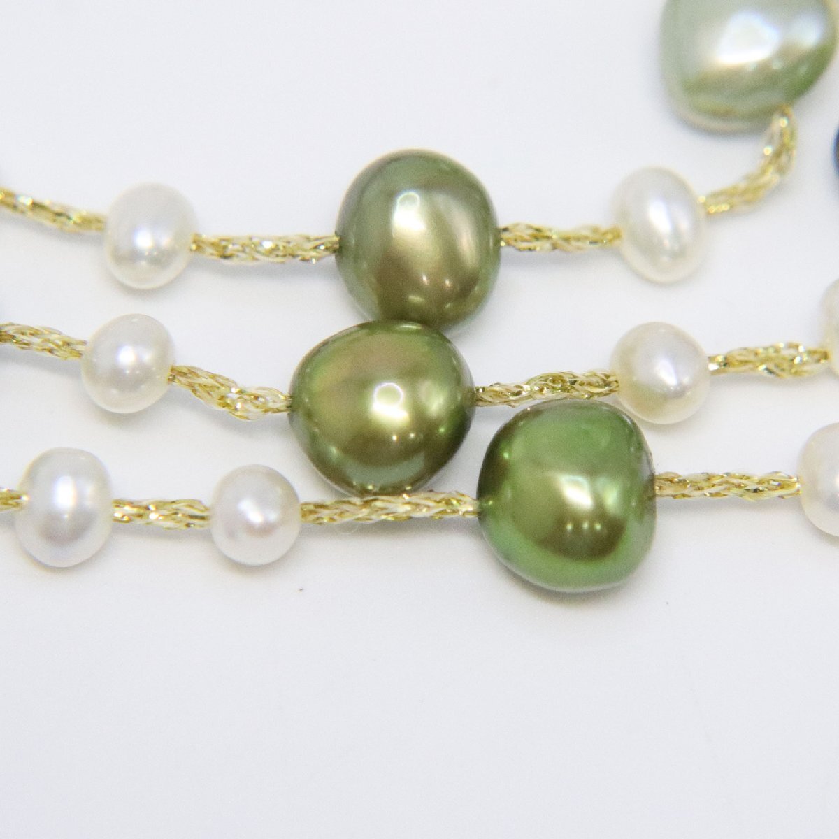 商品名 SV925 淡水パール 3連 ロング ネックレス グリーン系マルチカラー 約80cm 真珠 レディース アクセサリー pearl 中古 美品 送料無料!!