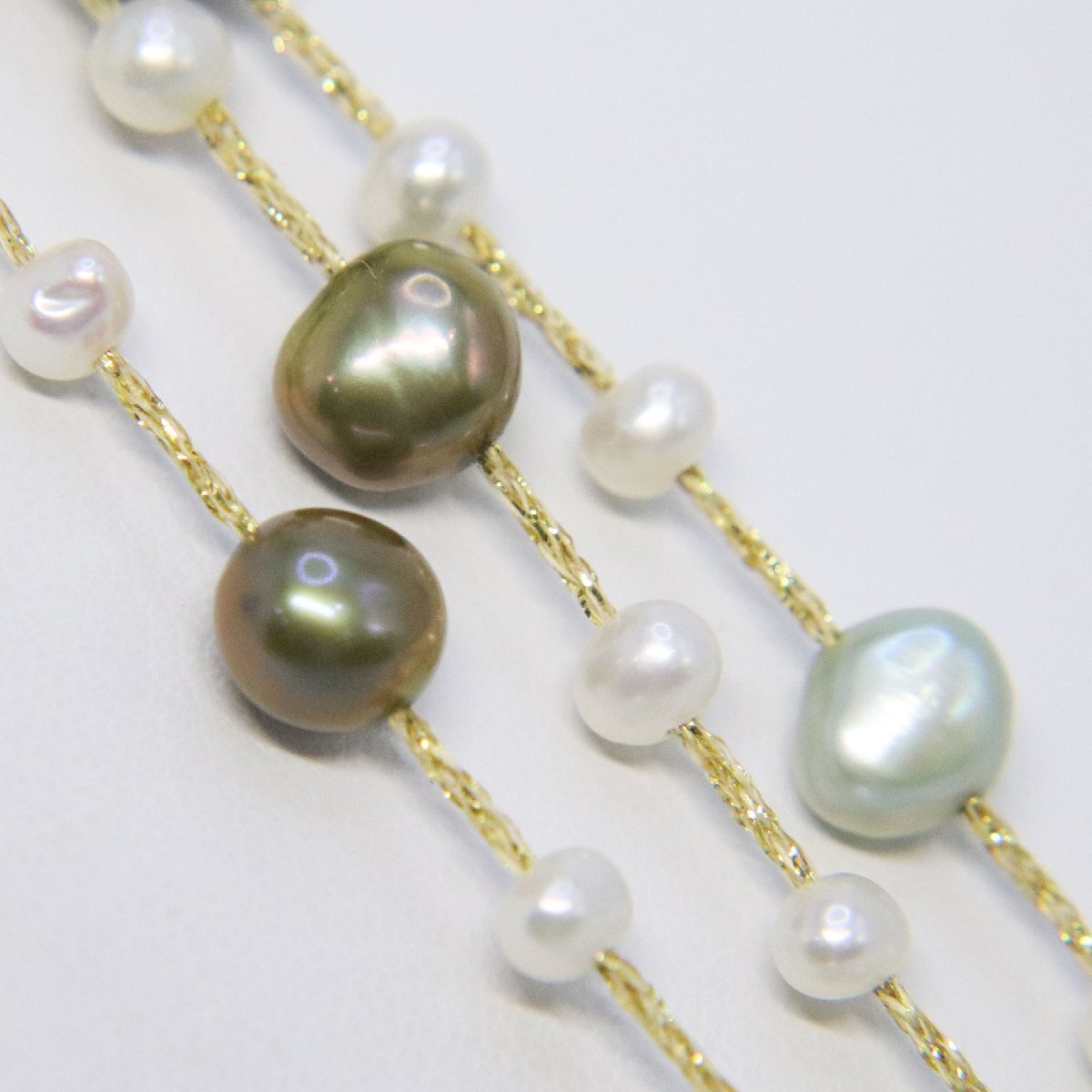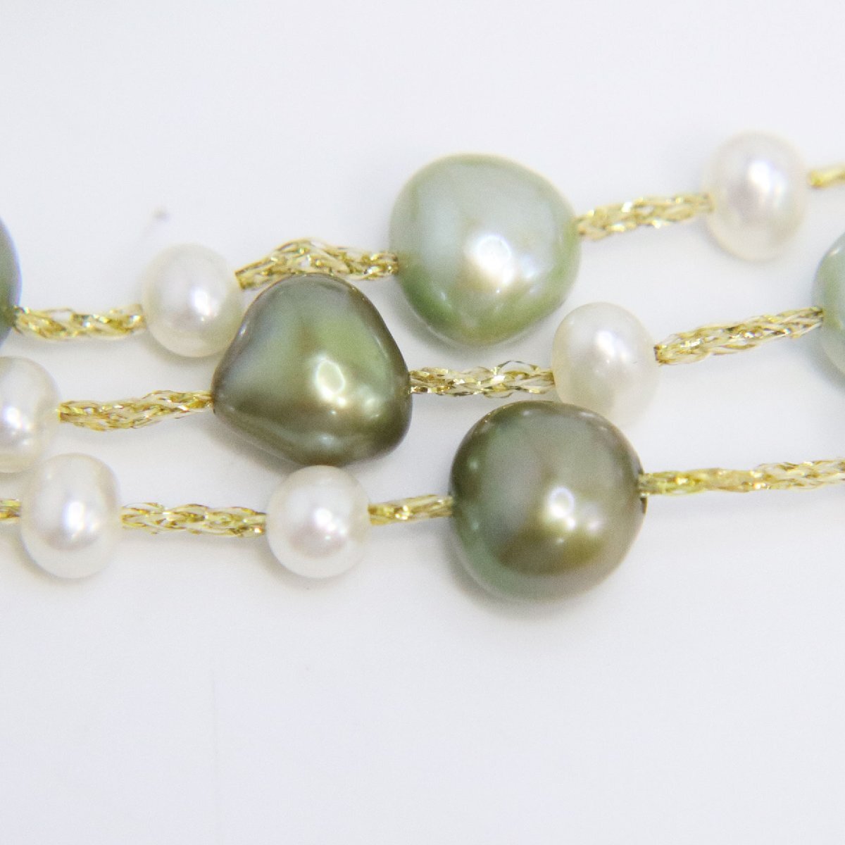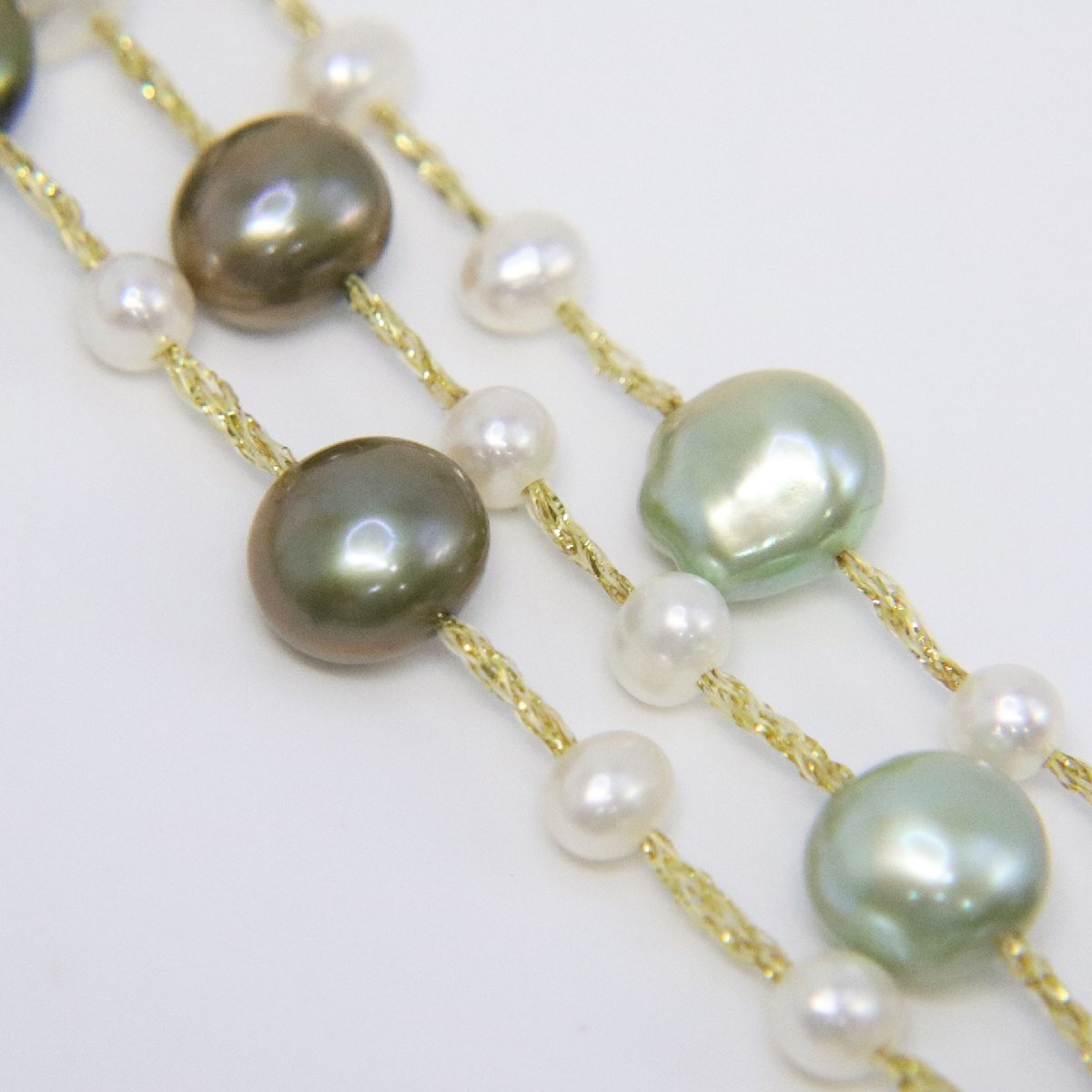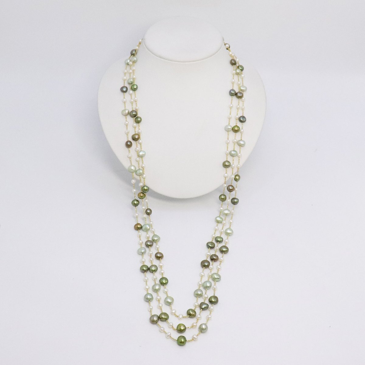 商品名 SV925 淡水パール 3連 ロング ネックレス グリーン系マルチカラー 約80cm 真珠 レディース アクセサリー pearl 中古 美品 送料無料!!