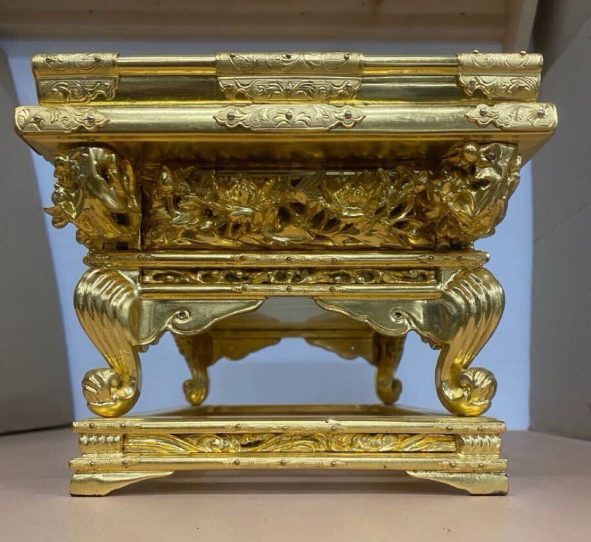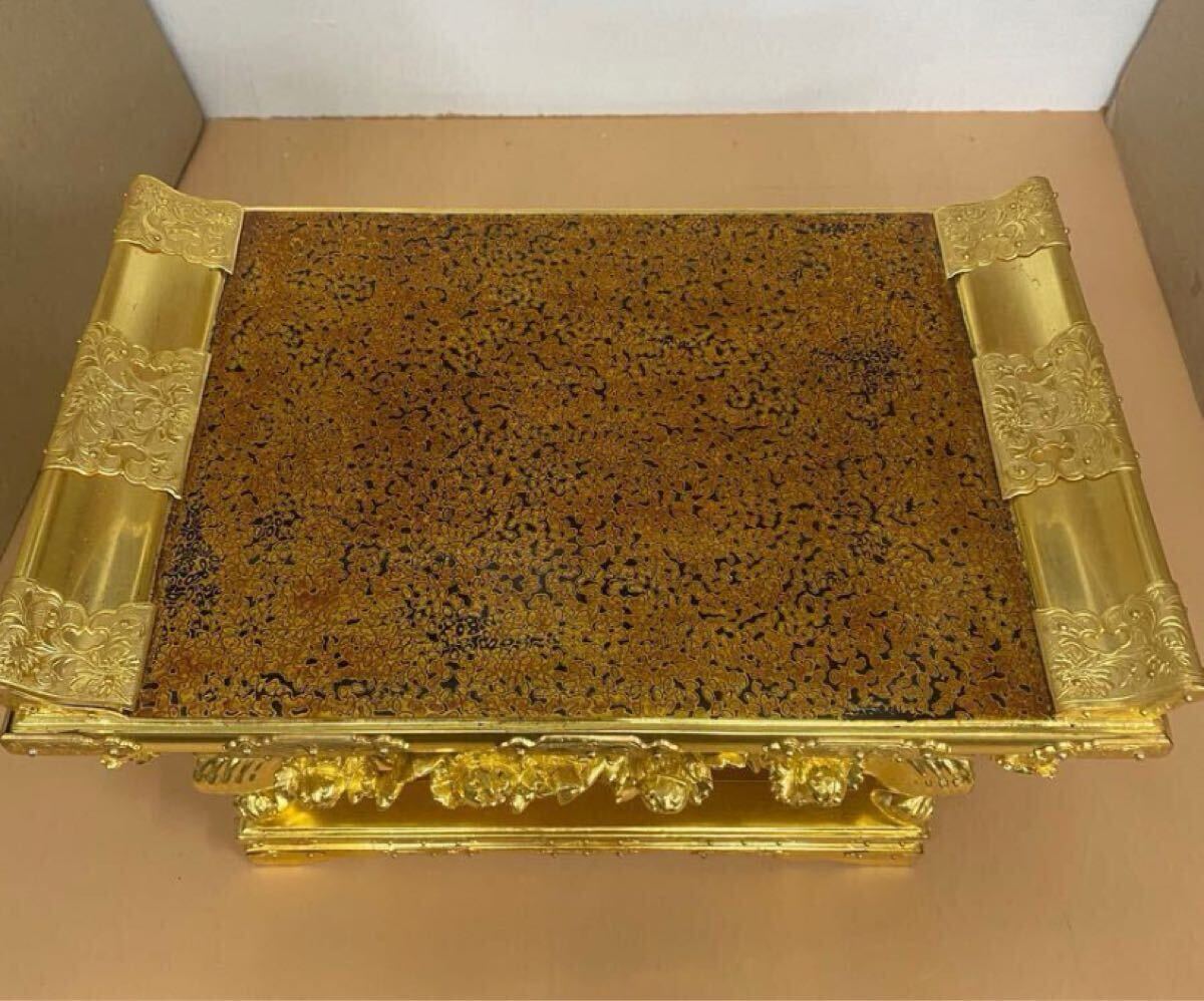 中筋足和讃卓 筆返天板 うるし金虫 金具打 9寸