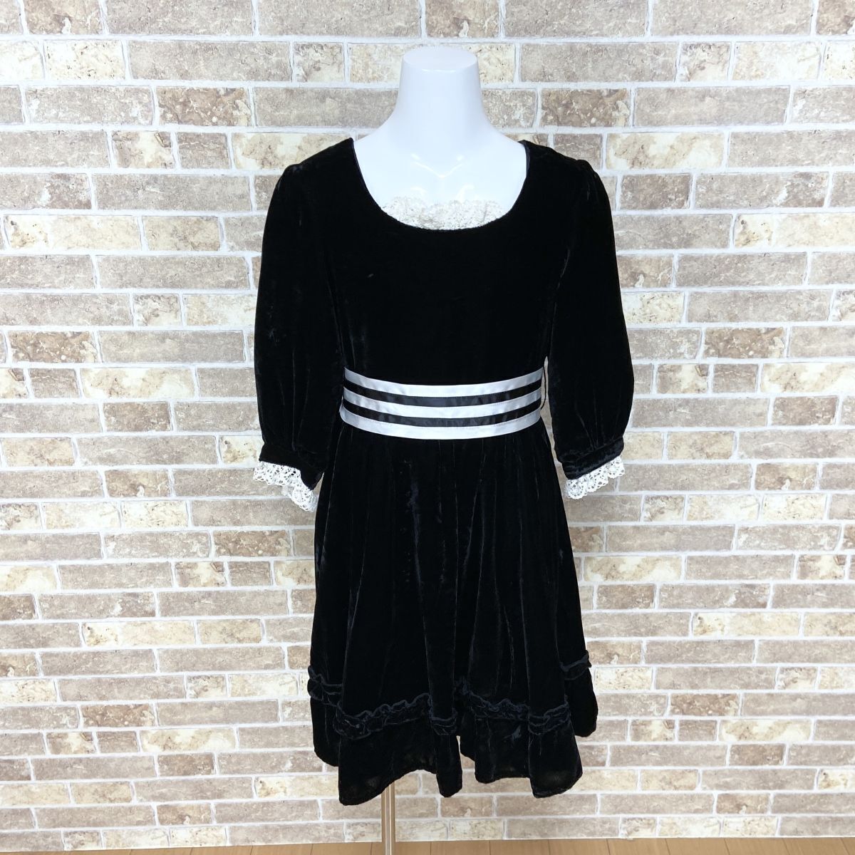 子供ドレス Catherine Cottage ワンピース 130 ベルベット黒 カラードレス 発表会 イベント 中古13339