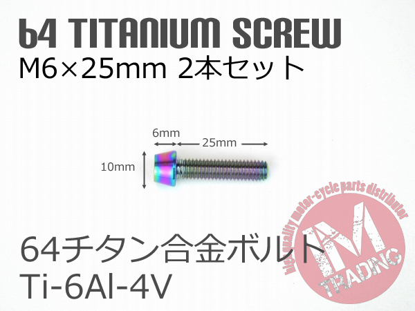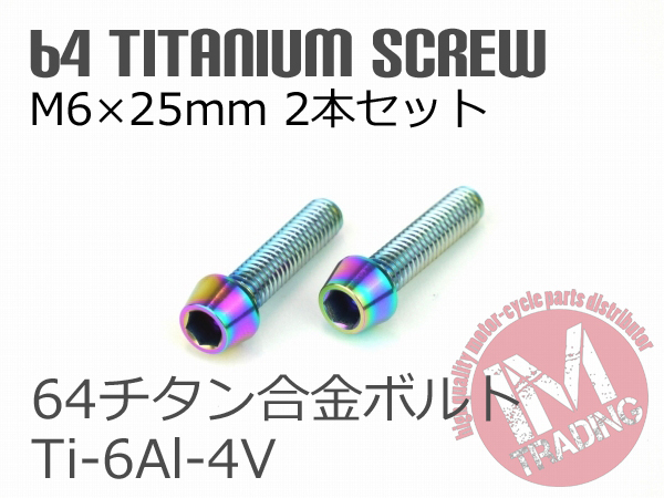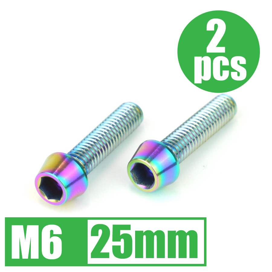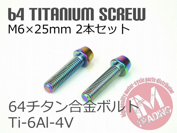 64チタン合金ボルト M6×25mm P1.0 2本セット テーパーキャップ ゆうパケット対応 焼き色有り Ti-6Al-4V