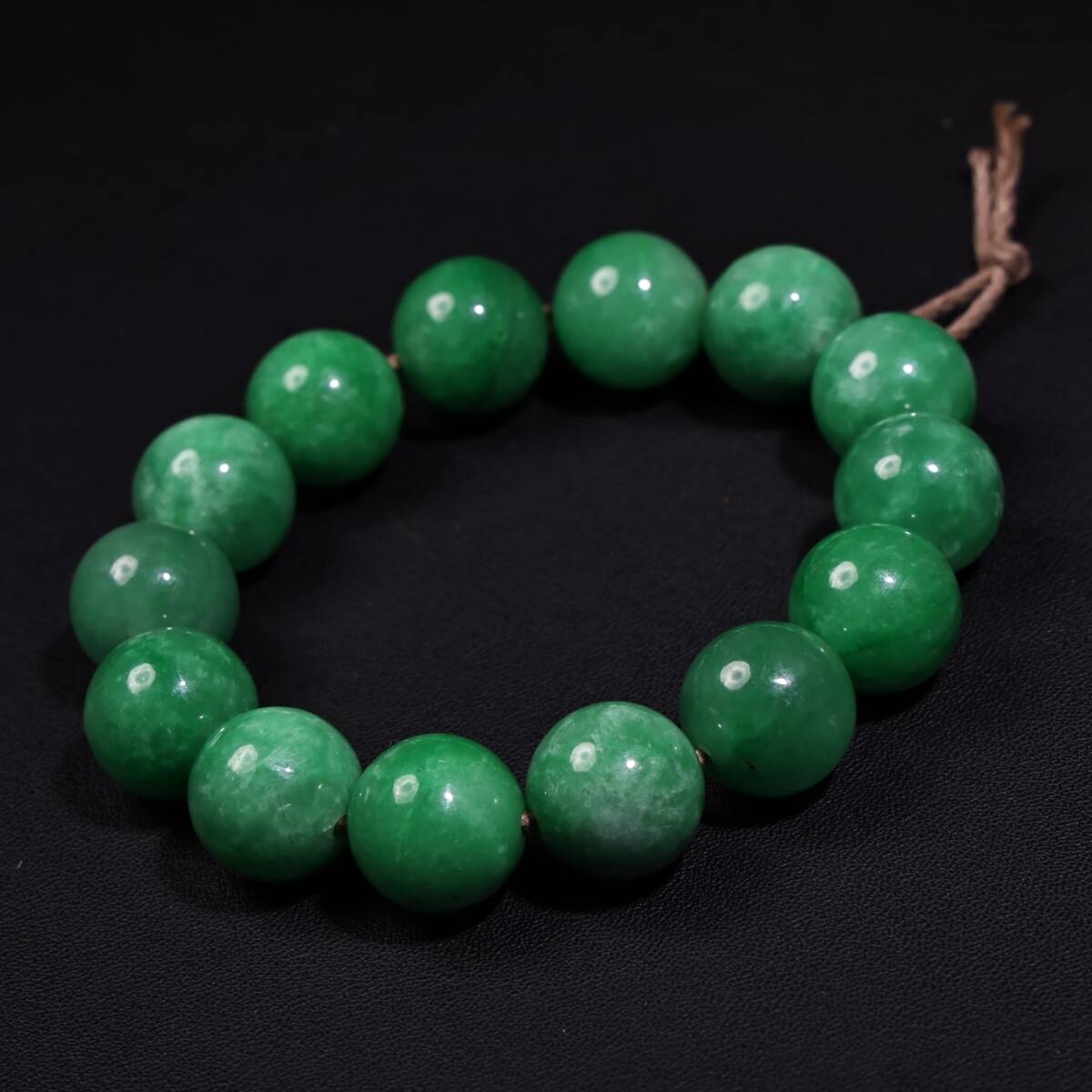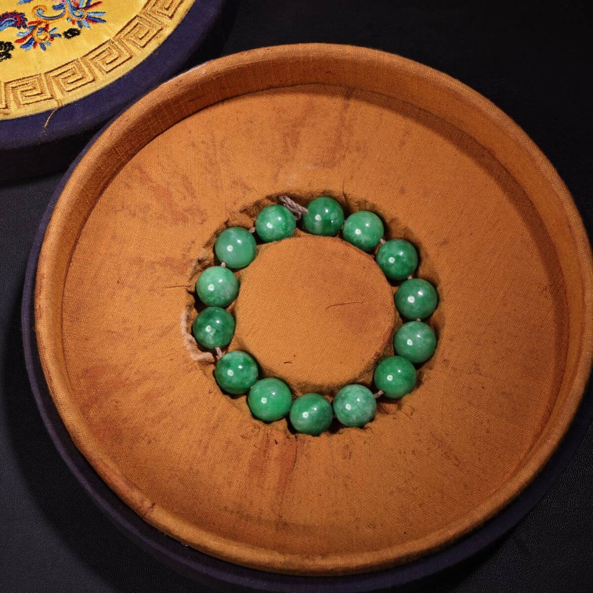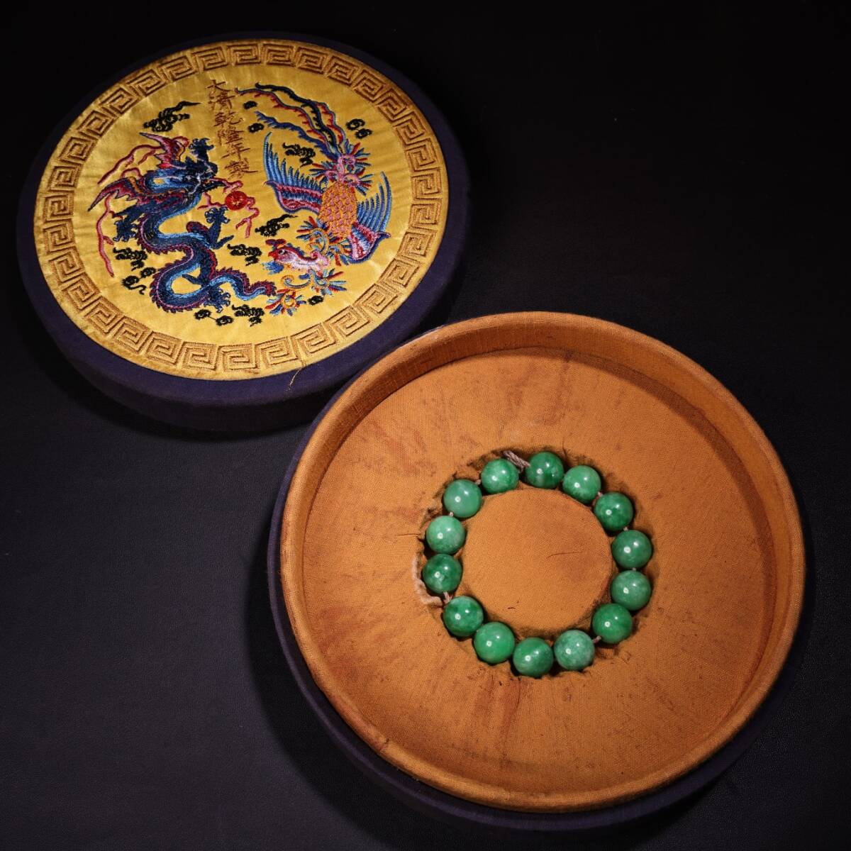 清時代 宮藏 帝王綠 翡翠彫 綠翡翠 手鏈 手串 腕輪 仏珠 念珠 箱付 置物 時代物 古董品 骨董 旧家蔵出し 唐物 中国古玩 古美術品