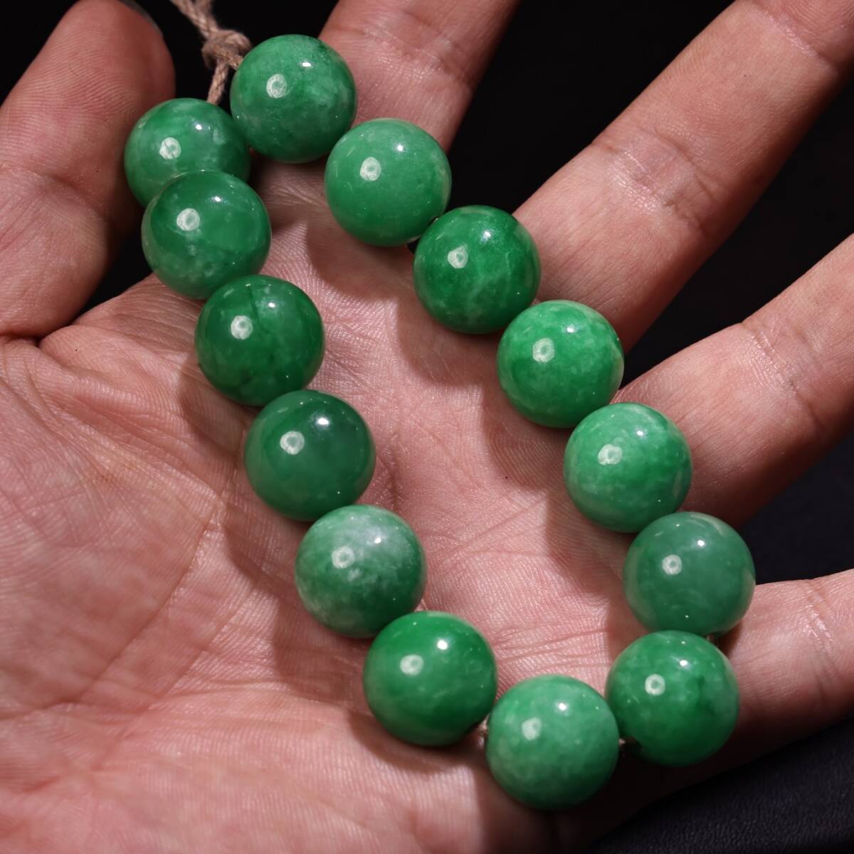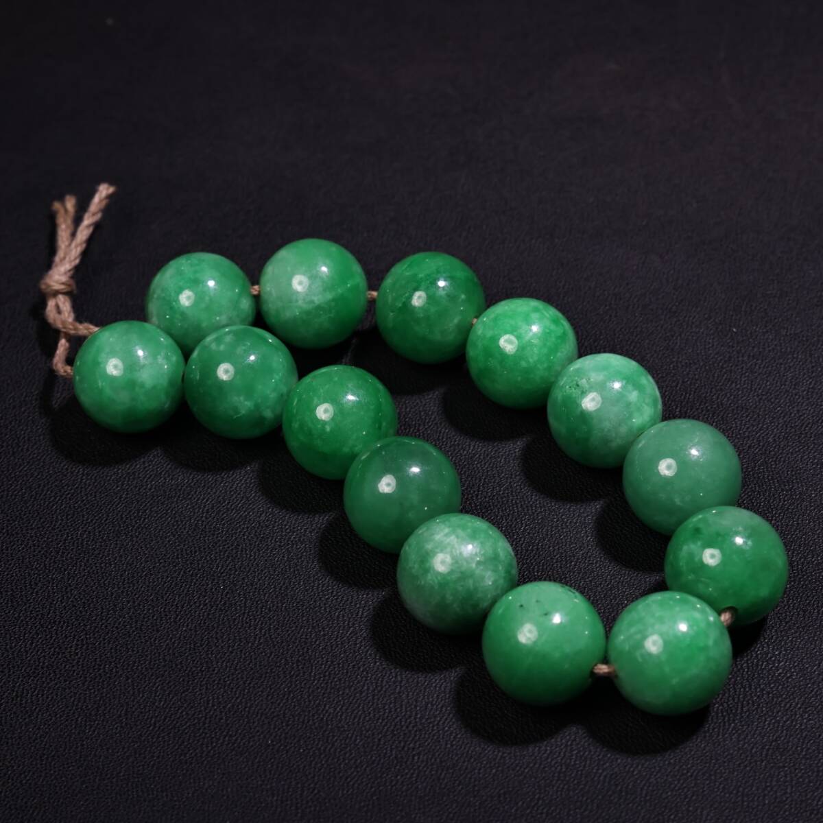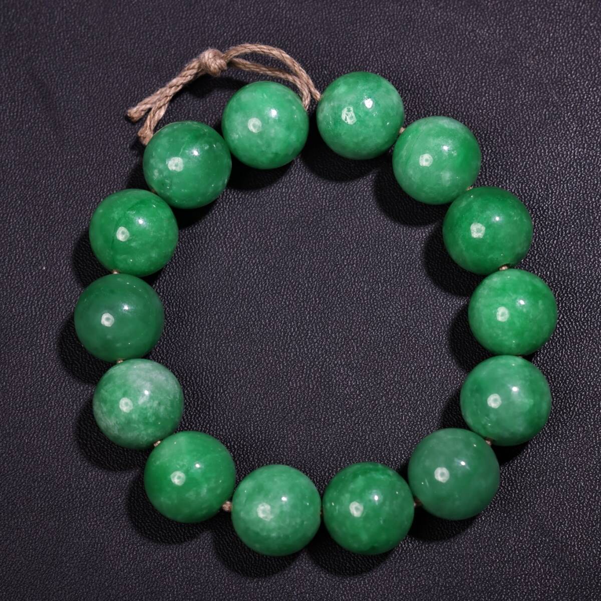 清時代 宮藏 帝王綠 翡翠彫 綠翡翠 手鏈 手串 腕輪 仏珠 念珠 箱付 置物 時代物 古董品 骨董 旧家蔵出し 唐物 中国古玩 古美術品