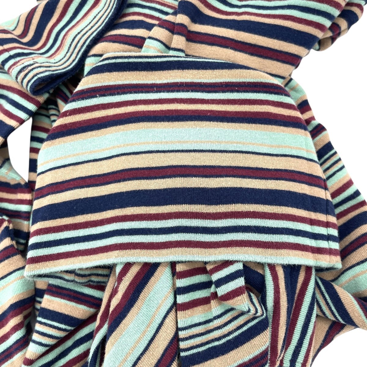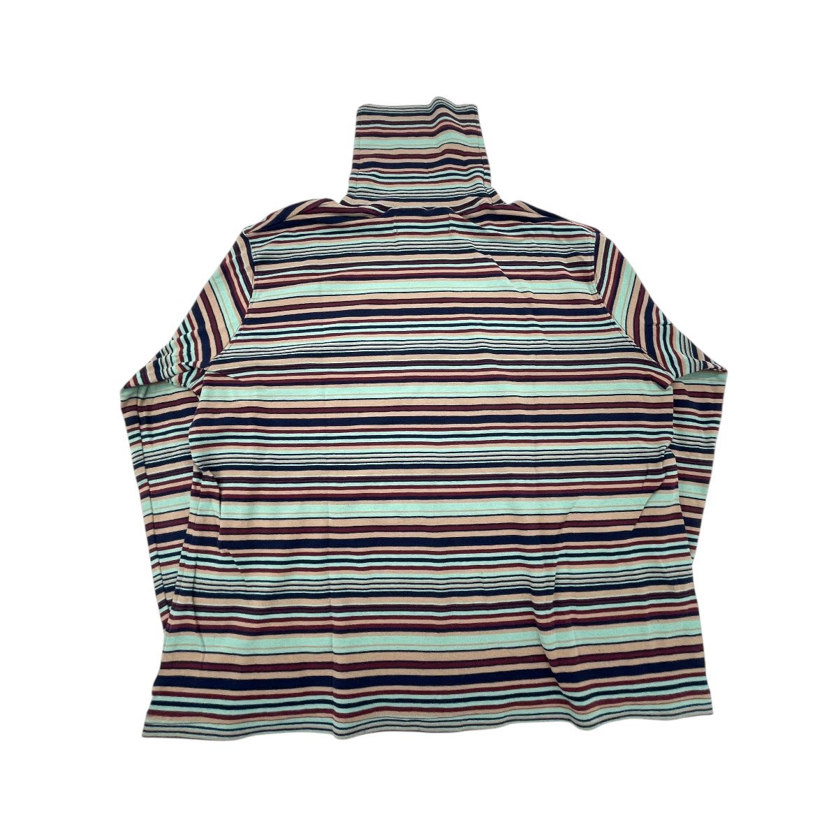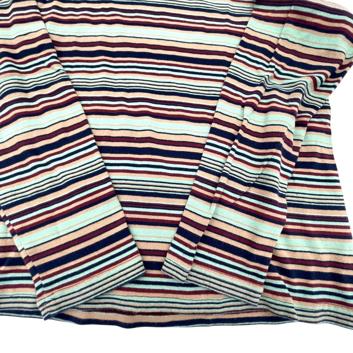 カラフルなマルチボーダー柄が特徴のタートルネック長袖カットソー。綿100%の柔らかな生地を使用しており、快適な着心地です。首元までしっかりカバーできるデザインで、秋冬のレイヤードコーデにも活躍します。 画像にあるものが全てとなりますので、状態等含めてご確認をお願いします。 |