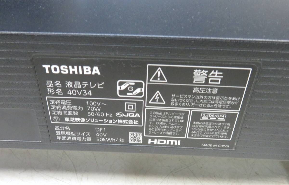 東芝 レグザ TOSHIBA REGZA 40V34 2020年製 40型 液晶テレビ 無線LAN  LEDバックライト