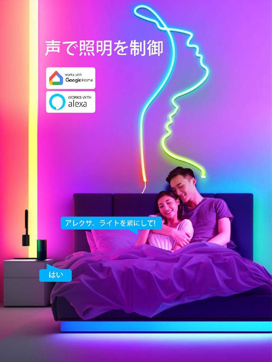 【特価】 LEDネオンライト 間接照明 Alexa Wi-Fi-Bluetooth 柔軟なDIYカット可能 LEDテープライト防