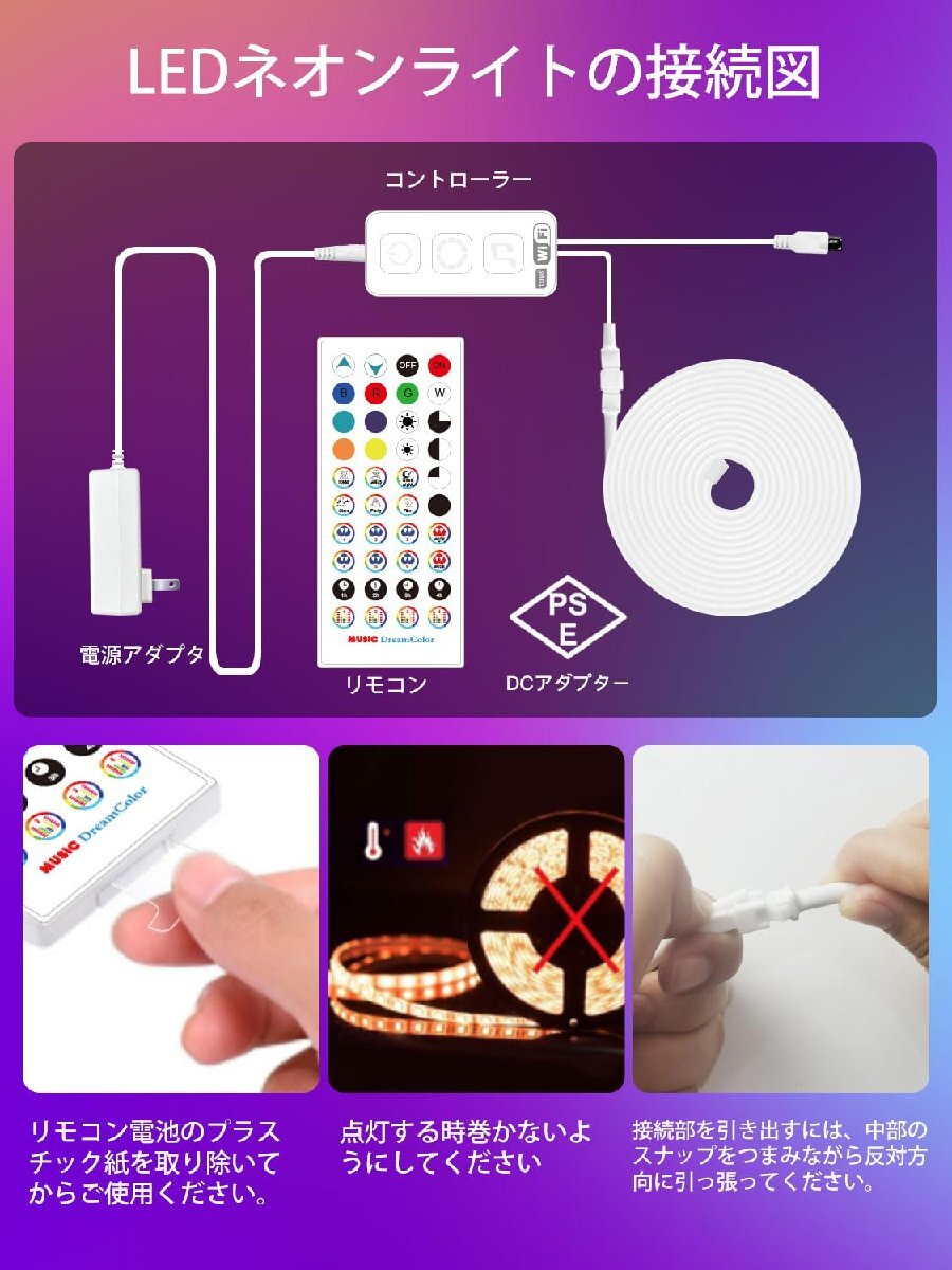 【ネオンチュパッケージ内容】ledネオンライトx1(3m)、PSE認証電源アダプタx1、コントローラx1、リモコンx1、日本語取扱説明書x1、固定用のネジセットx1。弊店は、安心・安全なショッピング体験をさせていくために、一年間の保障サービスを提供しております。(何かご質問がありましたら、24時間以内に解決でき、お気軽にお問い合わせください。)