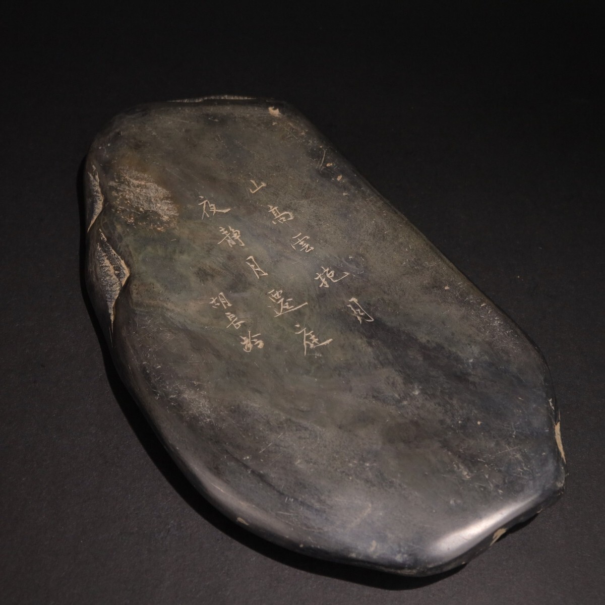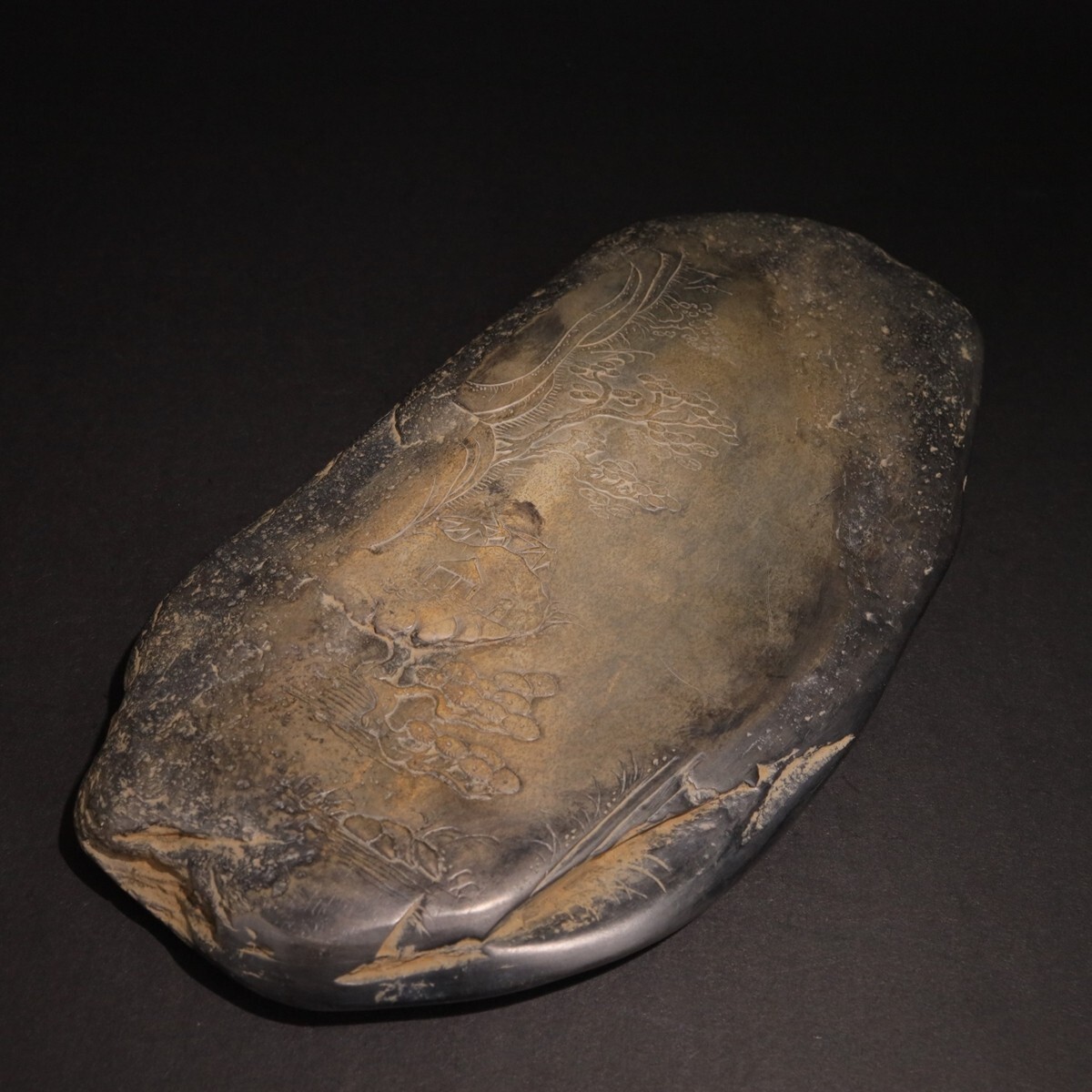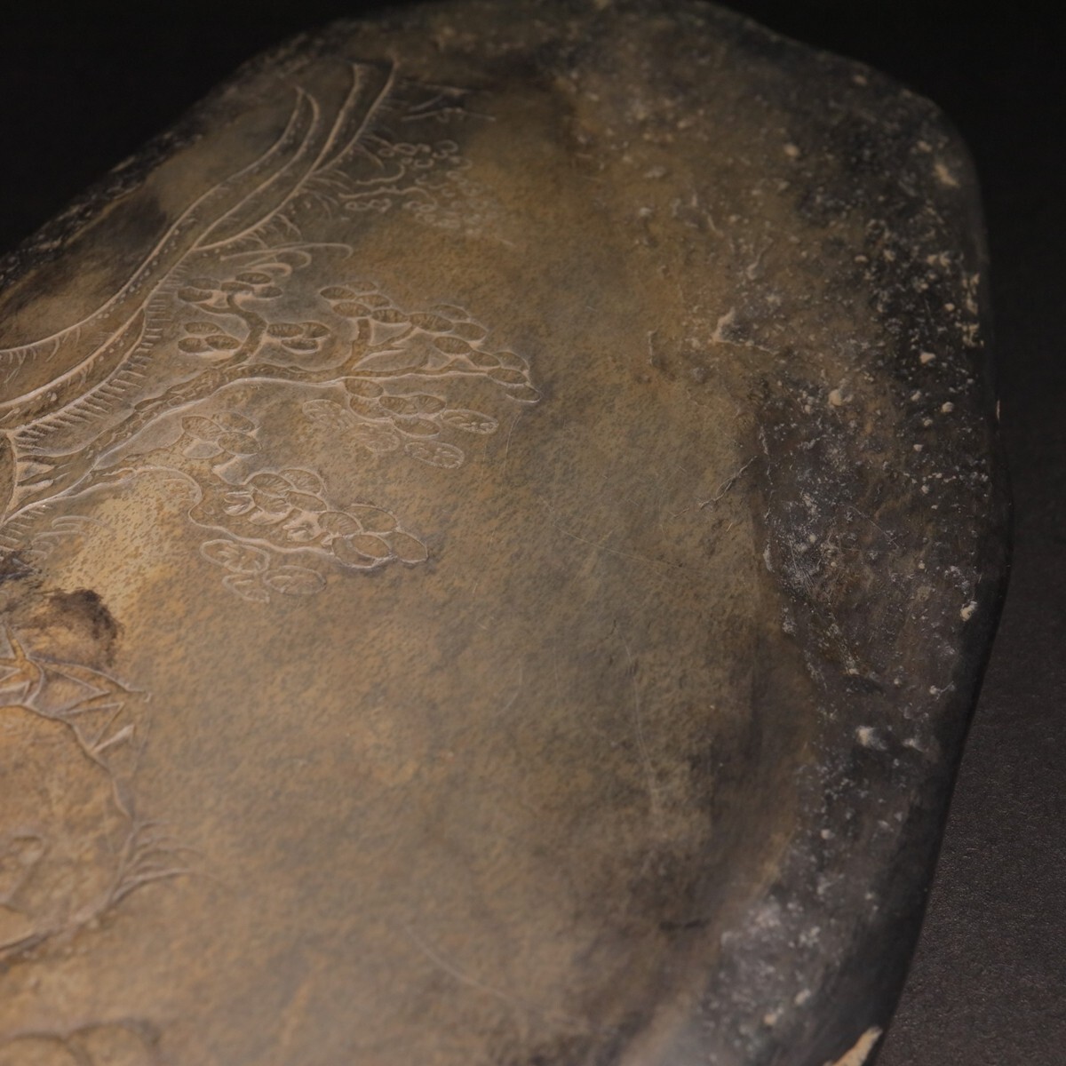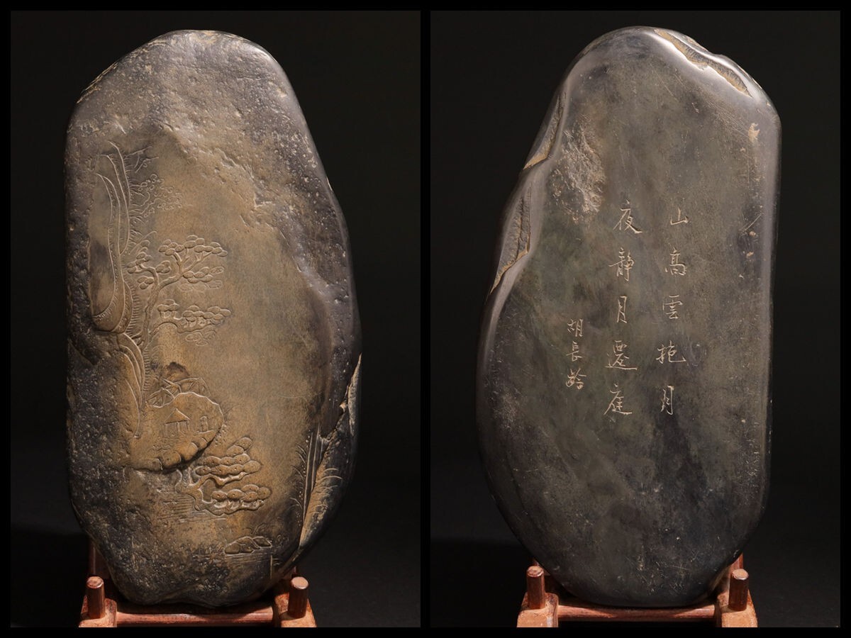 「老坑青魚仔歙石硯 松渓竹隠文房歙硯 胡長齢銘 清時代」手彫り 文房四宝 書道具 中国古美術 旧蔵出