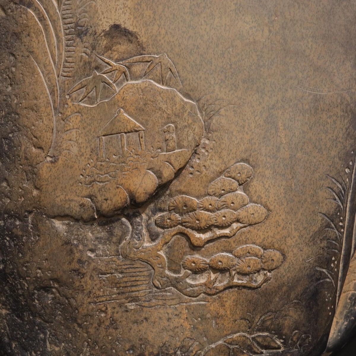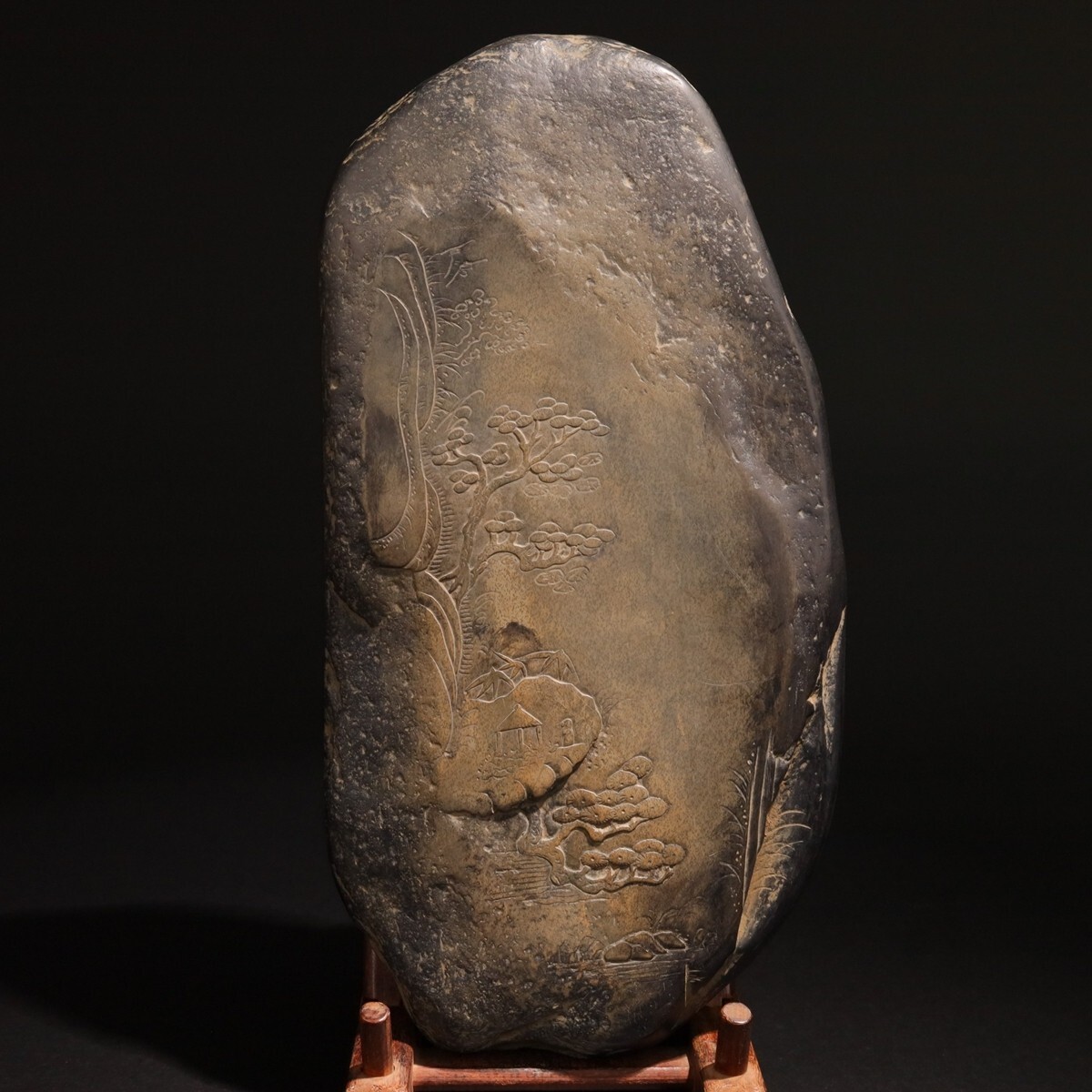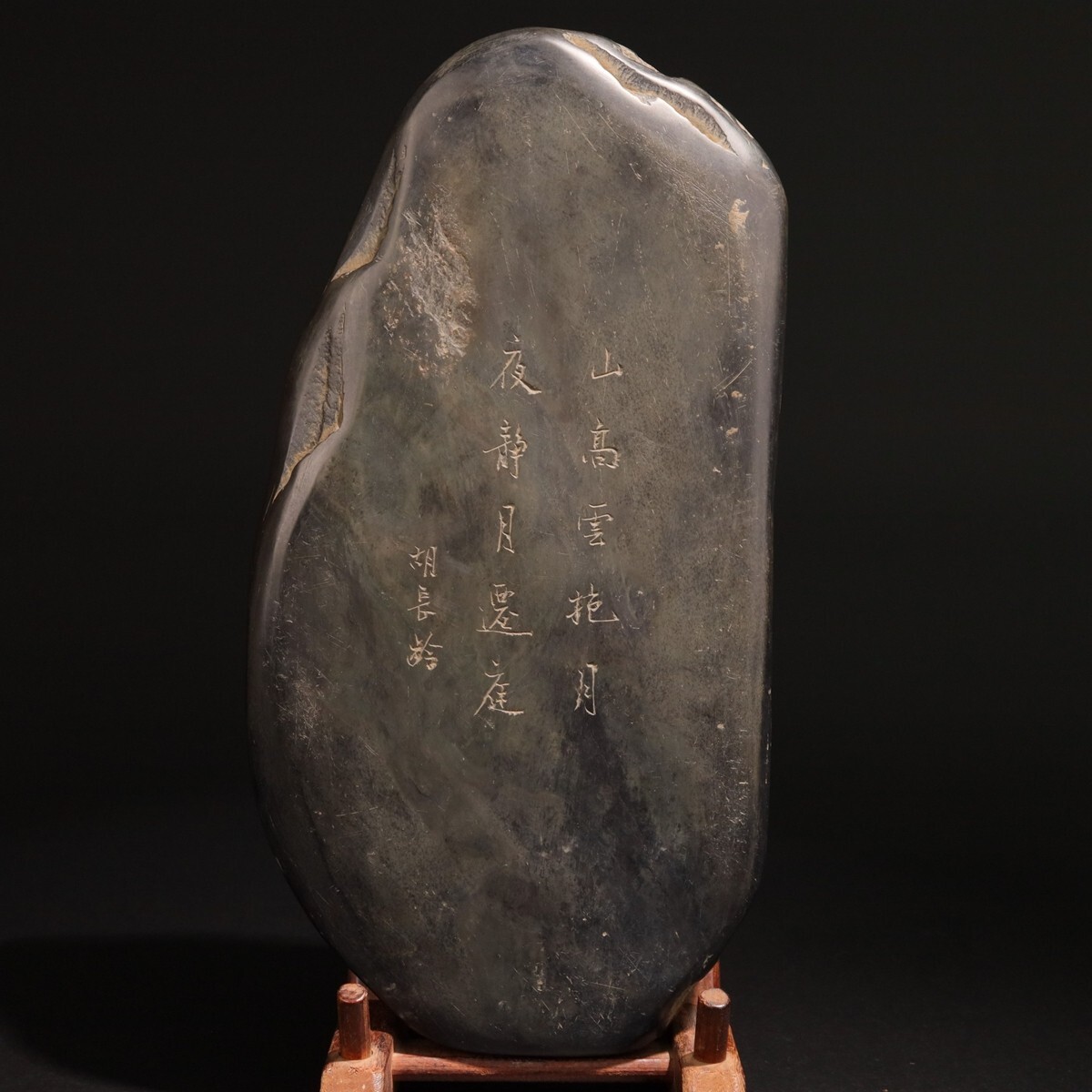 「老坑青魚仔歙石硯 松渓竹隠文房歙硯 胡長齢銘 清時代」手彫り 文房四宝 書道具 中国古美術 旧蔵出