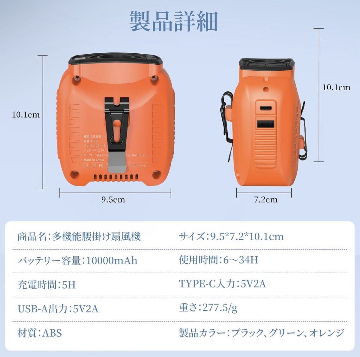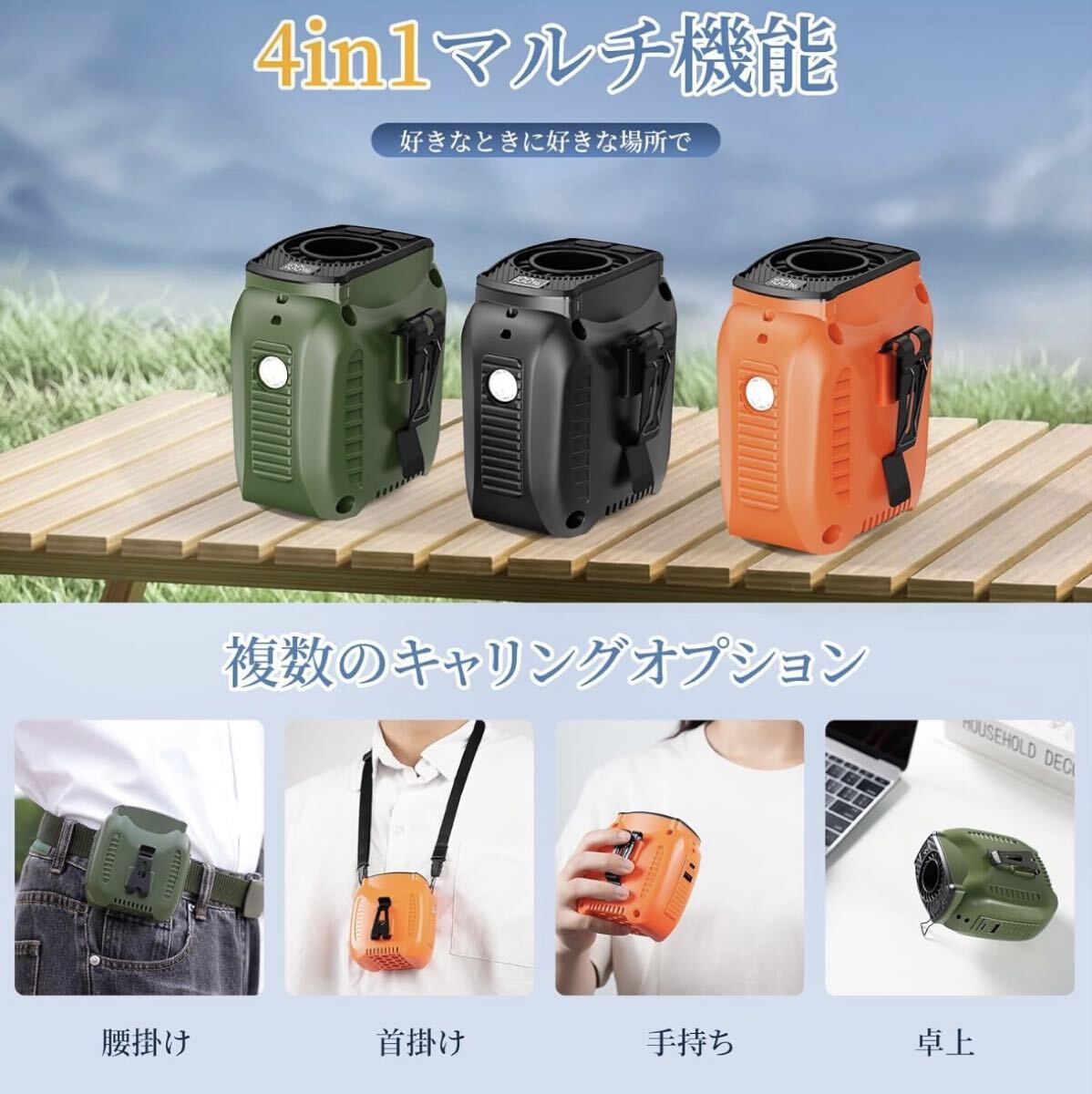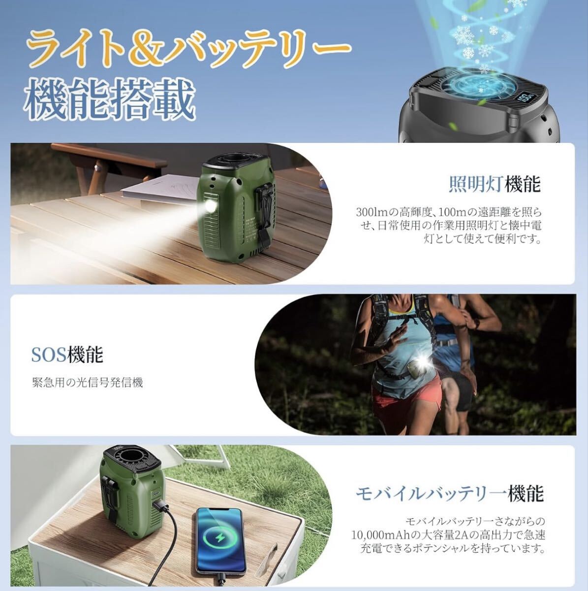 10000mAhバッテリー搭載の多機能携帯扇風機で、最大26時間の使用が可能。