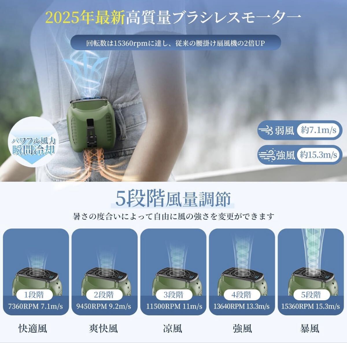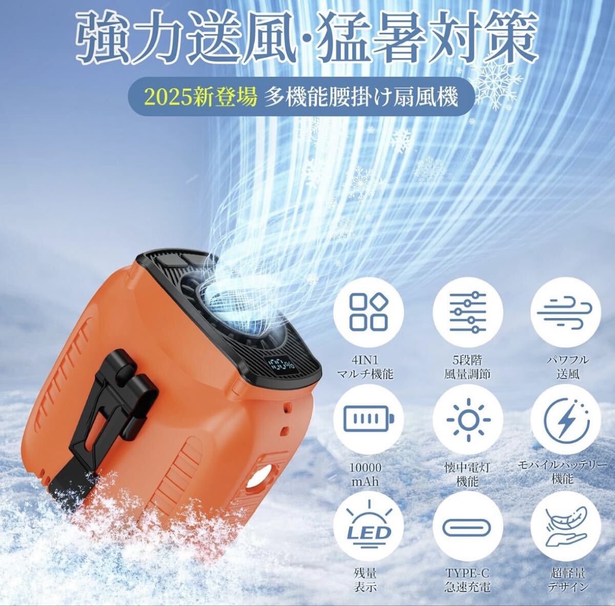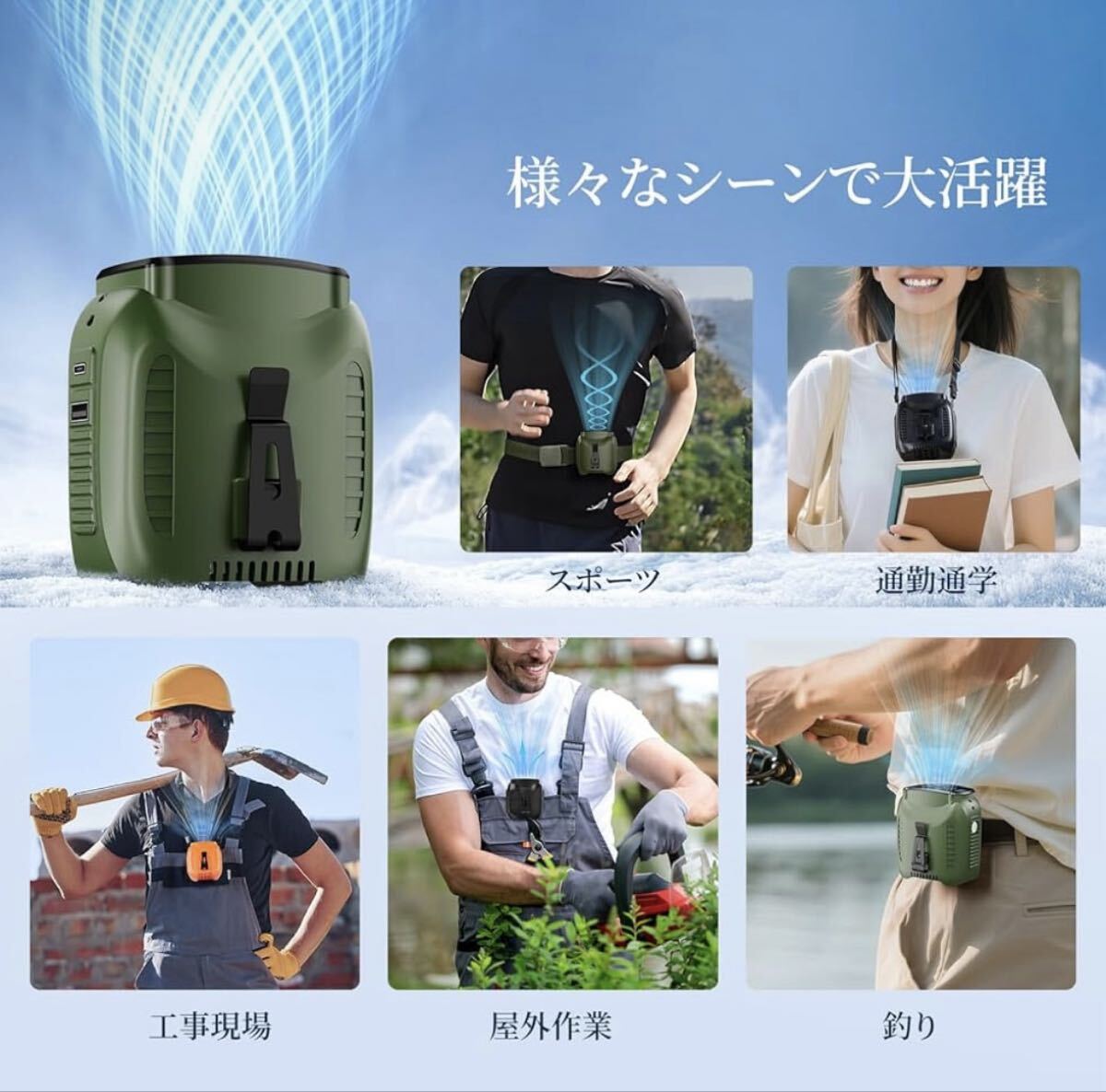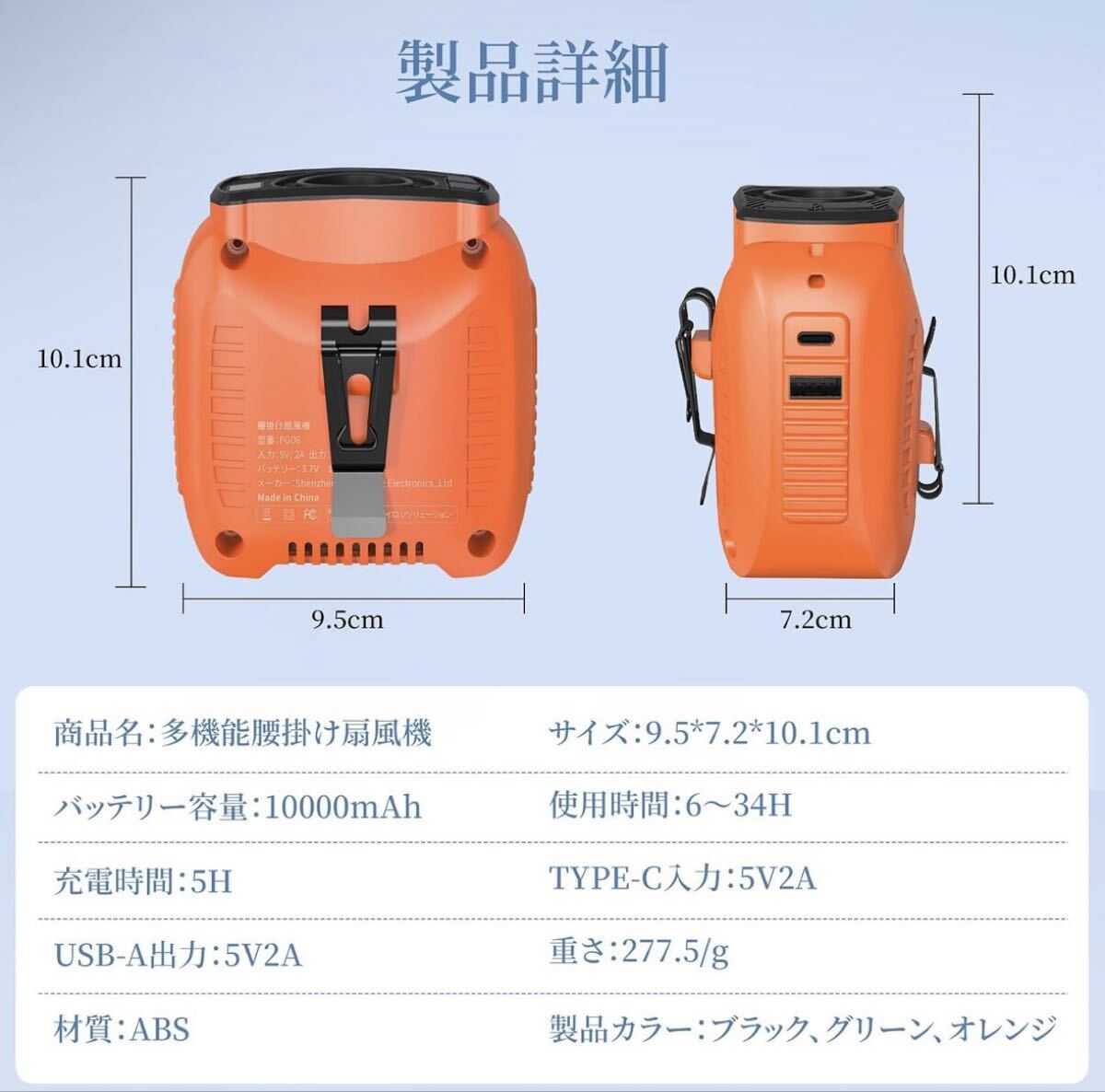 10000mAhバッテリー搭載の多機能携帯扇風機で、最大26時間の使用が可能。