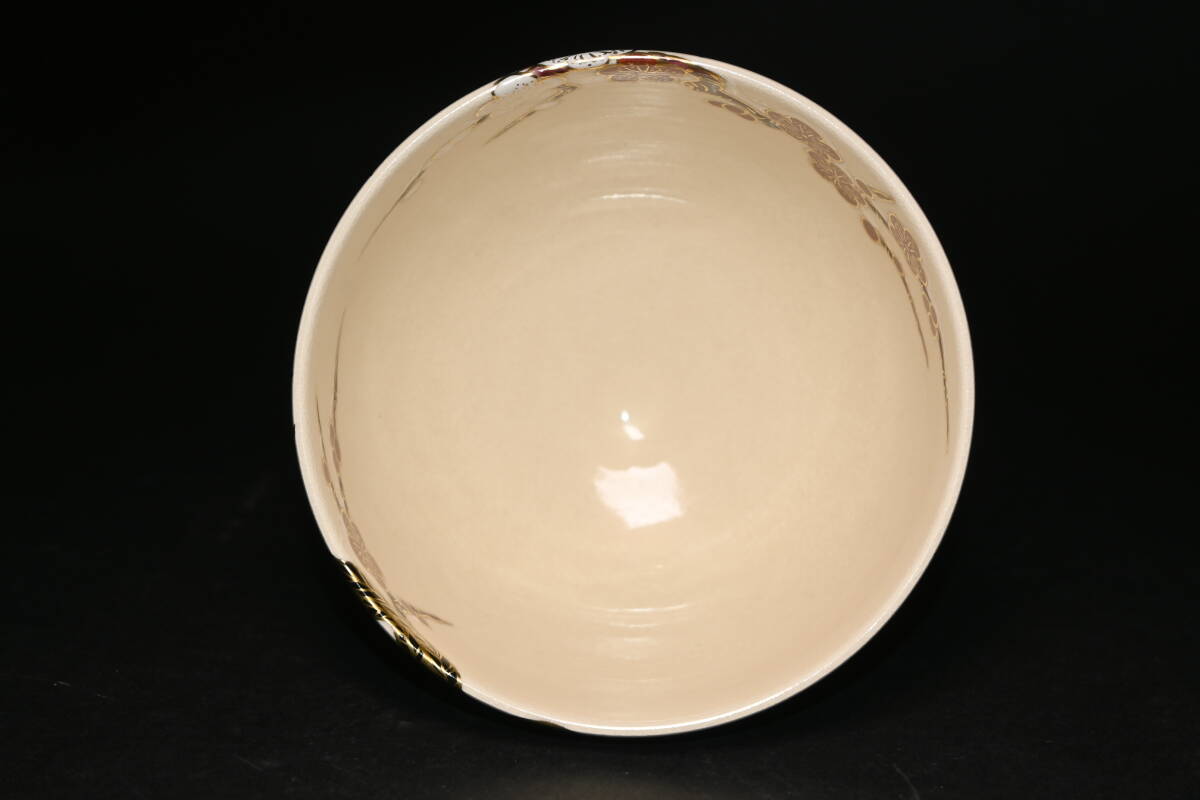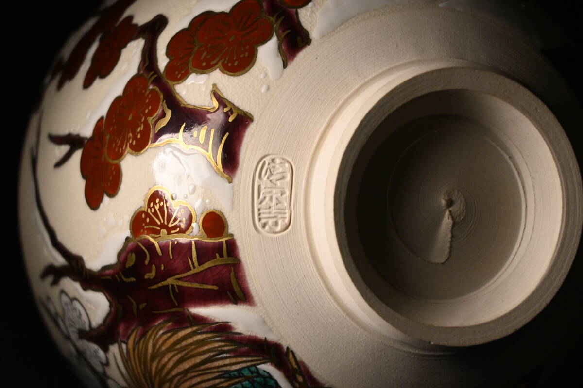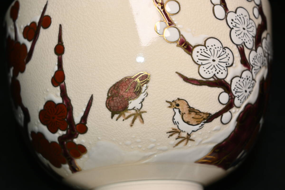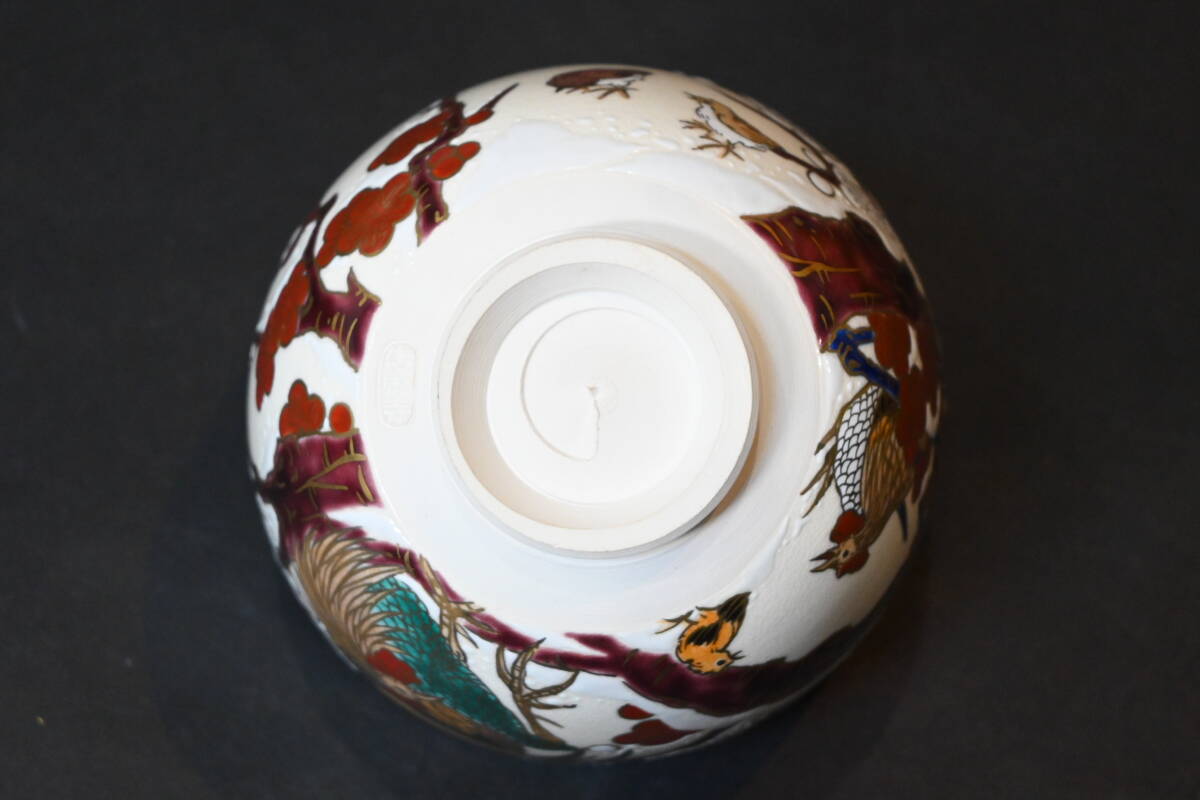真贋保証■清閑寺窯 杉田祥平 造■ 色絵梅雪画ノ酉 茶碗 共箱・共布・栞付 金彩 梅花 雪景色 親子鶏 茶道具 抹茶茶碗 茶器 茶会 京焼 | |||||||||