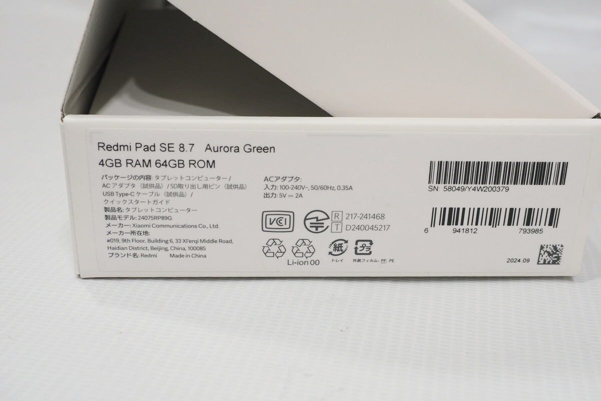 ご覧頂きありがとうございます。 こちらの商品はXiaomi製のタブレットRedmi Pad SE 8.7 Wi-Fiモデルです。 MediaTek Helio G85プロセッサーにメモリ4GB、6650mAhの大容量バッテリー搭載などコスパの良い良機種です。 製品の詳細なスペックはネットにてご検索ください。 ちょっとしたサブ機種として使用する用途で購入しましたが、私の用途としてはもう少し画面サイズの小さい物が適していた為、結局ほぼ使いませんでした。 新品時にガラスフィルムを貼っており、今回出品にあたり取り外しました。 そのため画面はほとんど新品時のコンディションで、裏面や側面などもほんの僅かなスレ程度で非常にキレイな状態です。 現在快適に動作しており、特に問題があって出品したわけではございません。 もちろん一括購入で残債もなく、このままお使い頂ける状態です。 出品物は画像にあるもので全てで、充電器などの付属品類も揃っています。 |