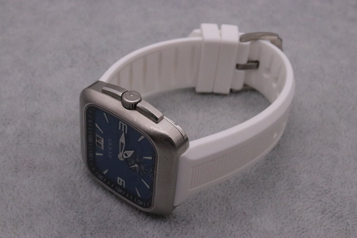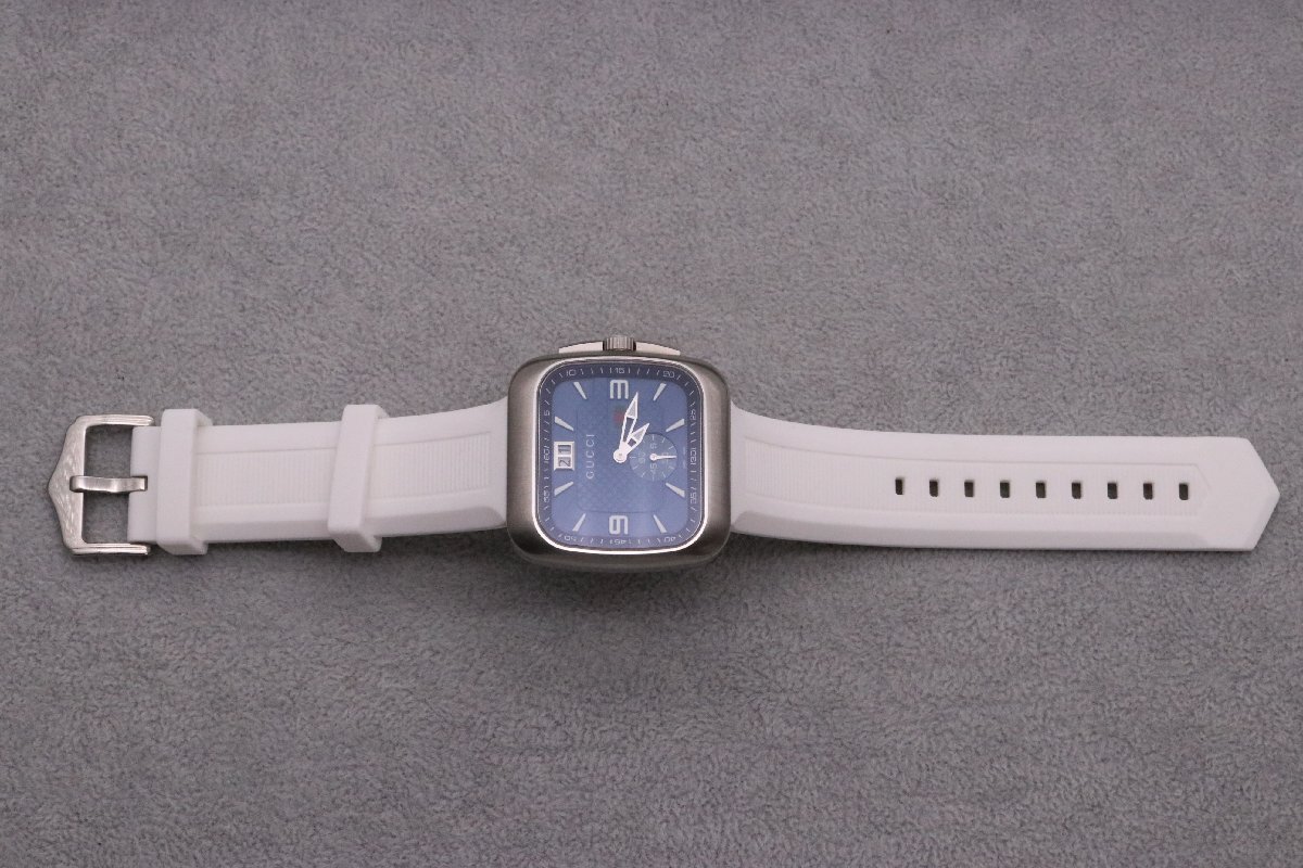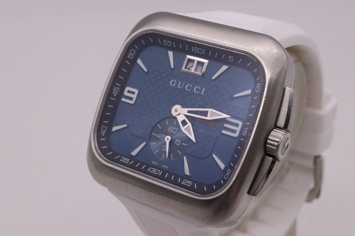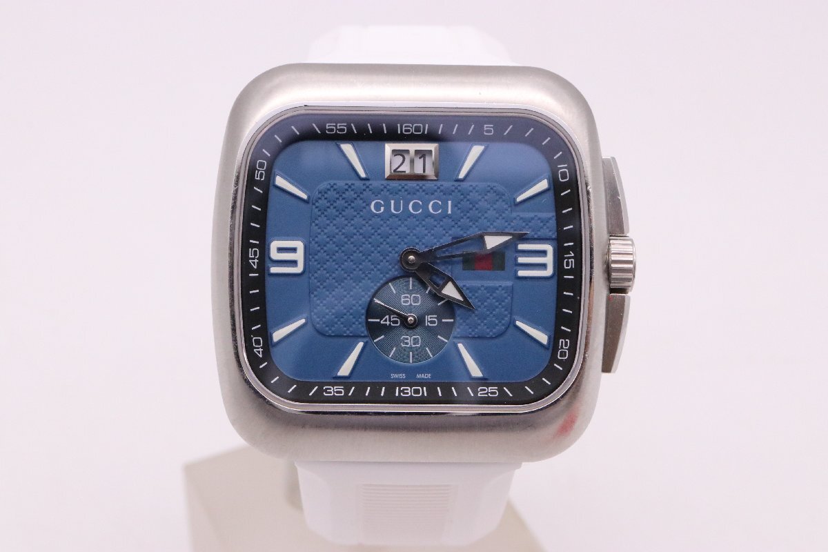 | GUCCI グッチ 131.3 グッチ クーペ ビッグデイト QZ クオーツ SS ブルー文字盤 スクエア 防水 メンズ腕時計 稼働品 | ||