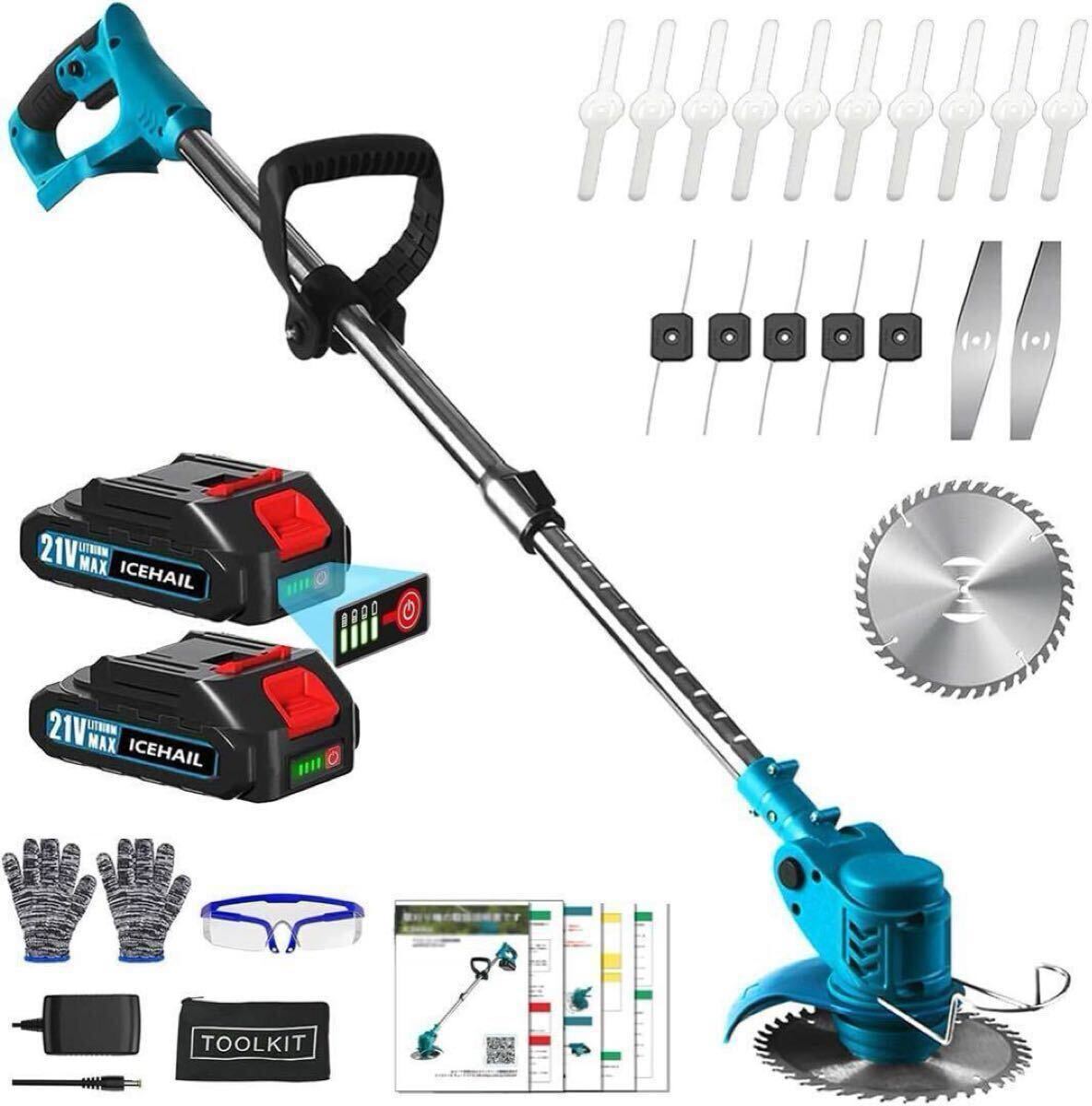 ■ パッケージ内容:充電式刈払機本体×1、6インチチップソー×1、鋼刃×2、ナイロン刃×10、ナイロンコードカッター×5、▼PSE認証リチウムバッテリー×2、充電器×1、保護メガネ×1、工具セット×1、取扱説明書×1(▼日本語マニュアル付属)