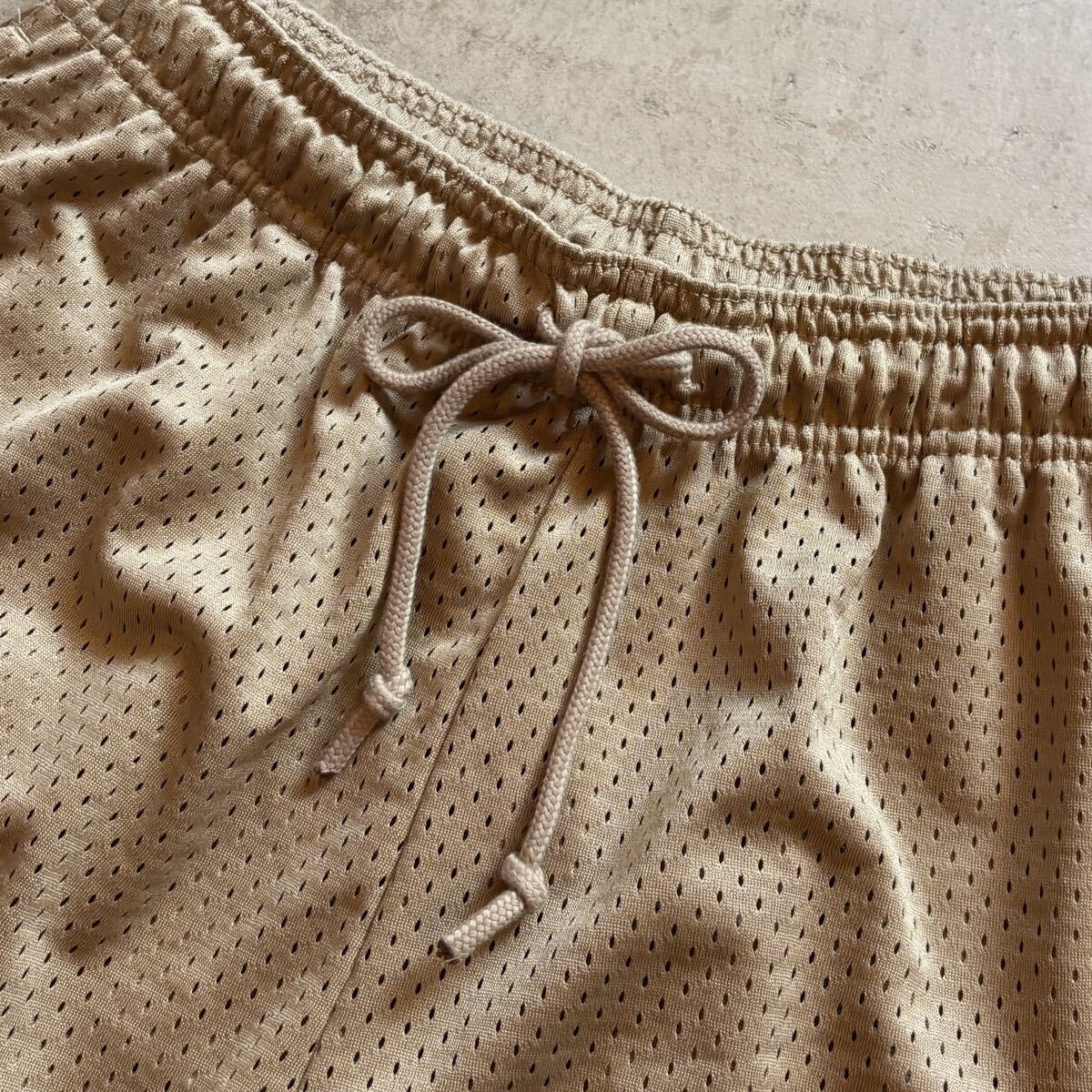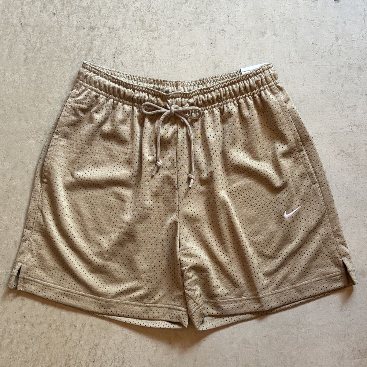 ベージュカラー、裾にスウッシュのワンポイントが刺繍された定番のデザイン