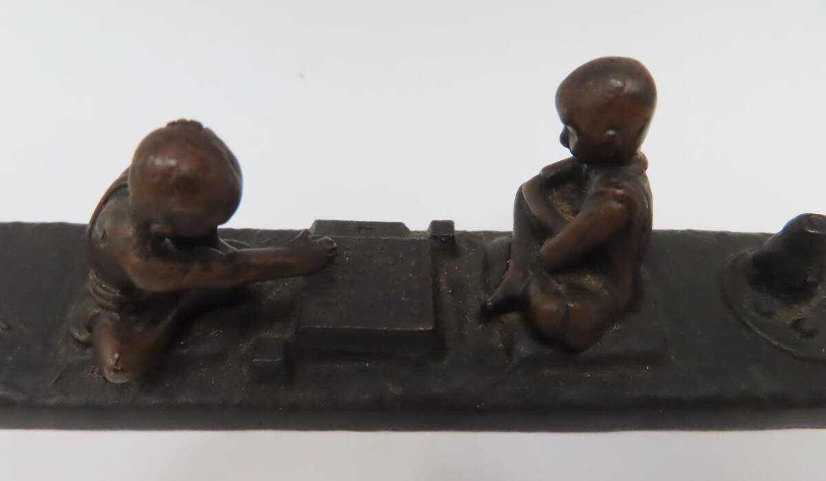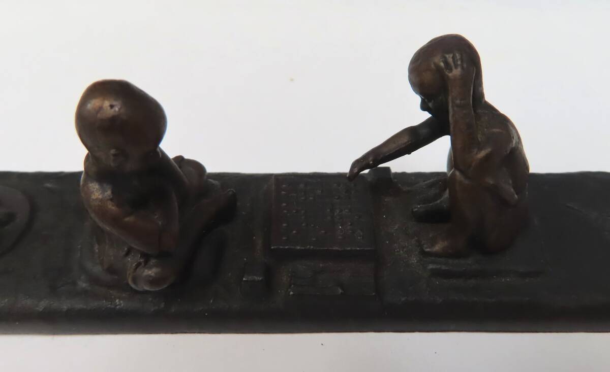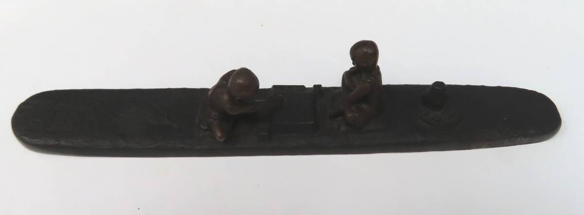 | #89348 青銅製文鎮 「勝負」 下尾治彦作 将棋 置物 書道具 文房具 美術品 | ||
