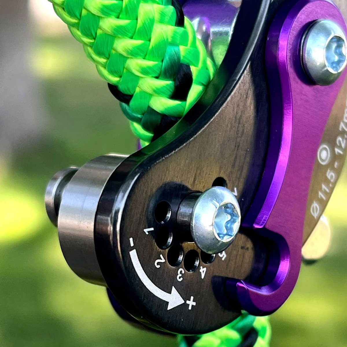 • 工具不要で、11.5 mm から 12.7 mm までのロープの摩擦設定を調整可能。承認されたロープリストは必要ありません。