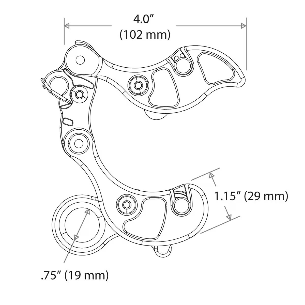 • 水平長さ: 4.0インチ (102 mm)