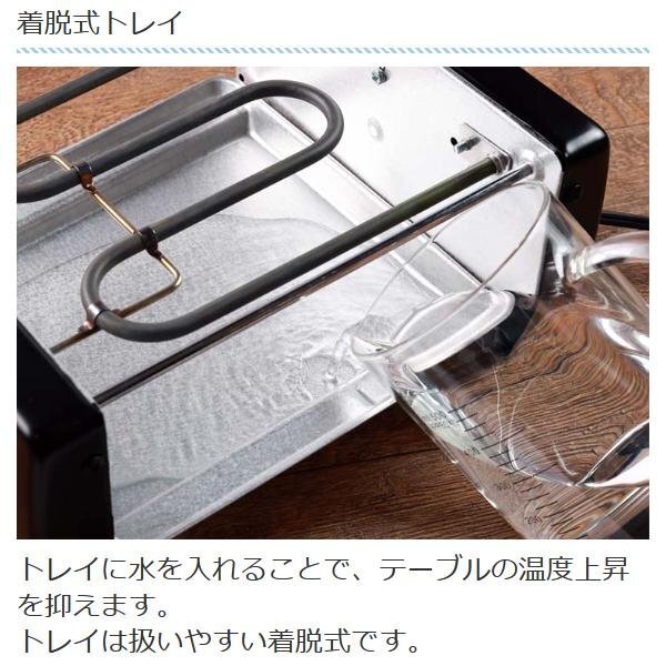 トレイに水を入れることで、テーブルの温度上昇を抑えます。