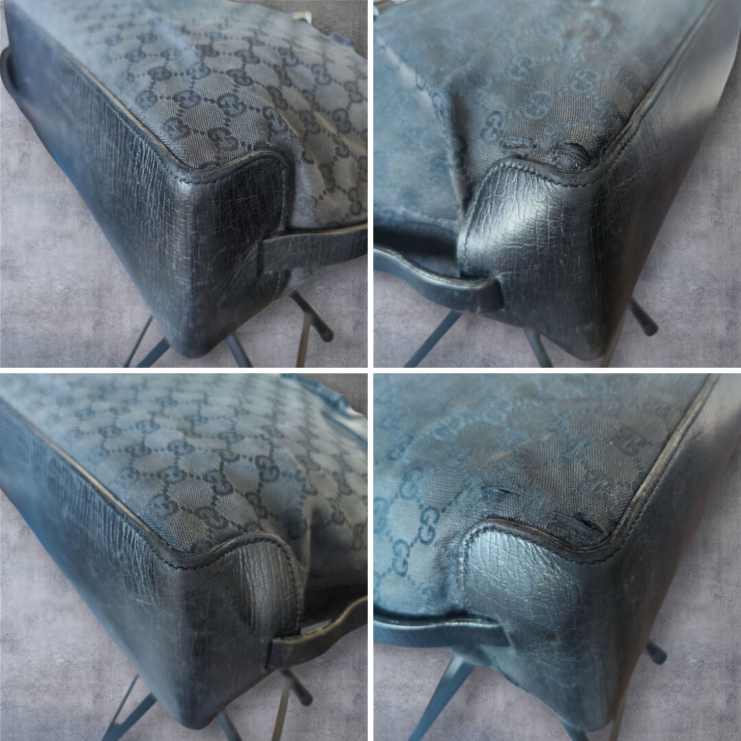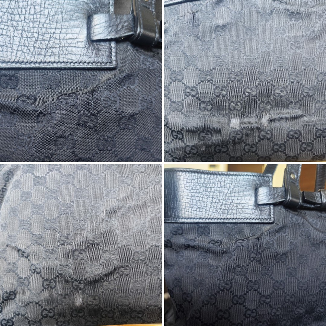 写真をご覧下さい。キャンバス地のスレ数カ所、型崩れなど使用感がありますが、黒なのであまり目立ちません。まだまだ長くご使用いただけます。