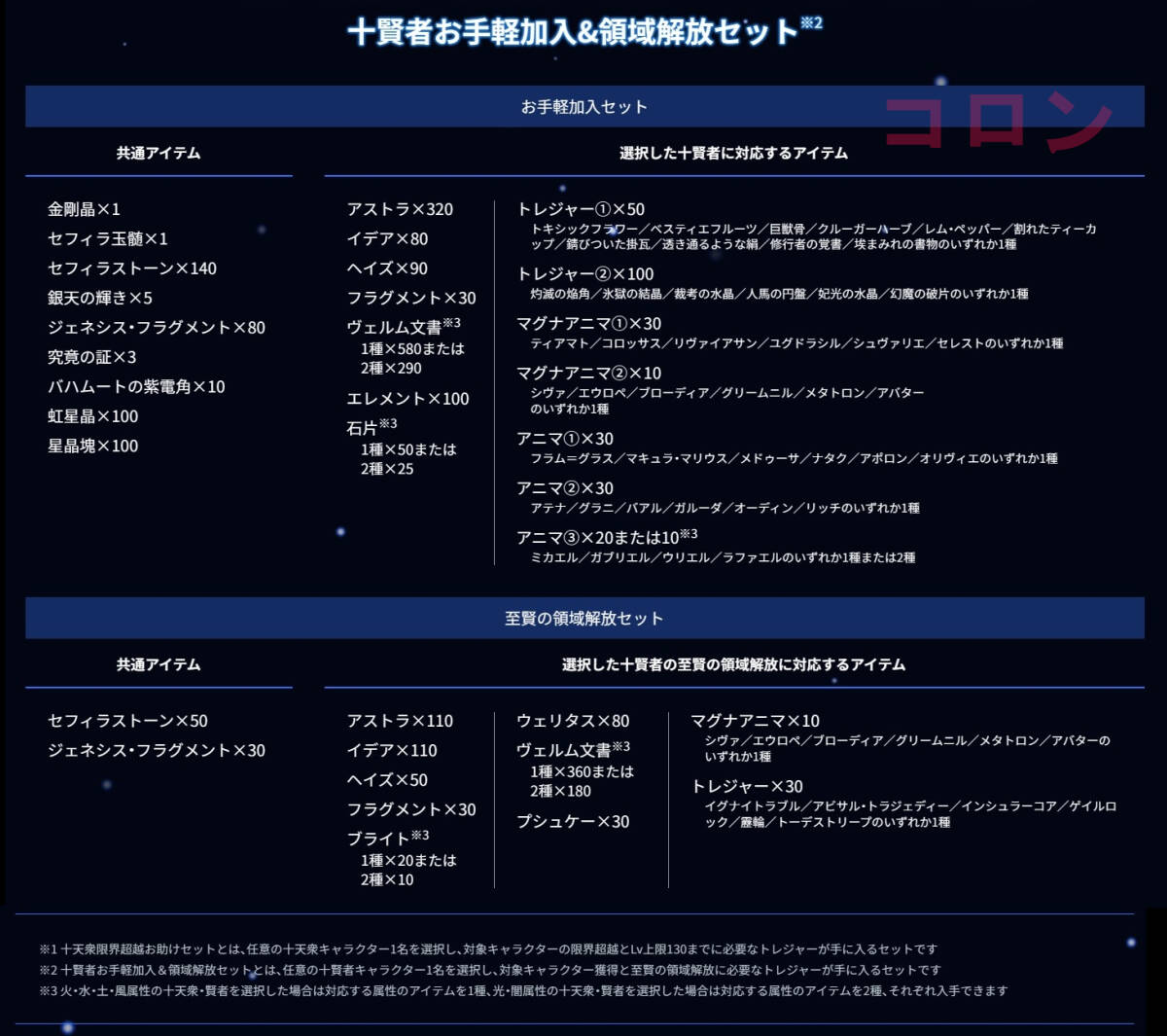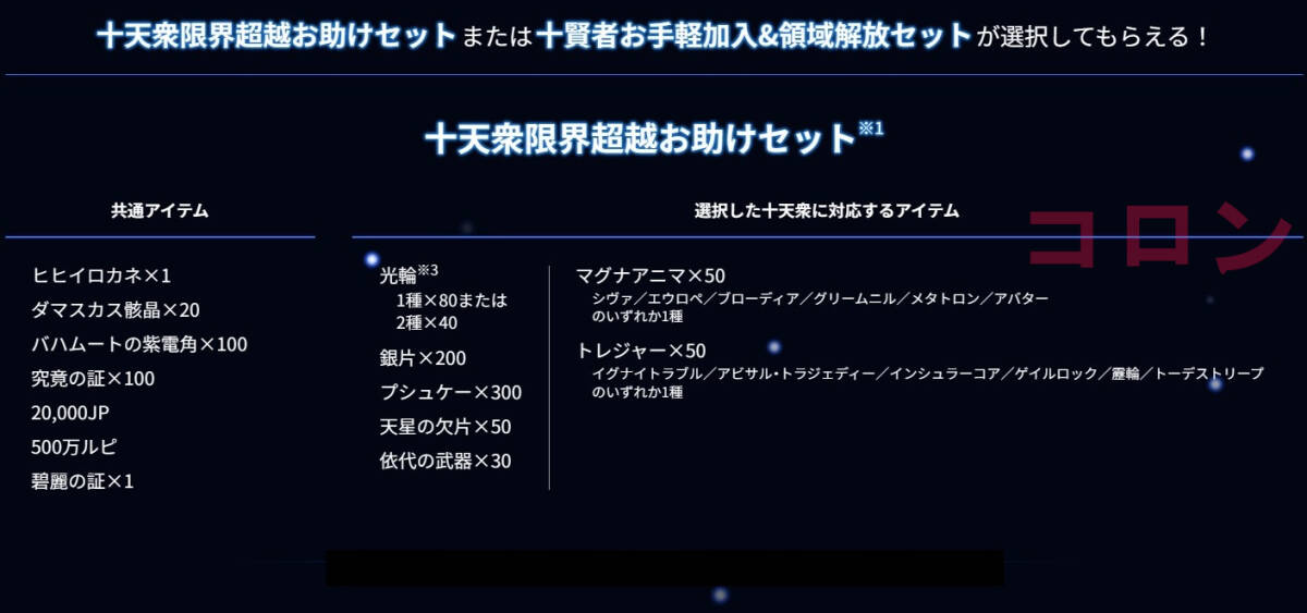 「十天衆限界超越お助けセット」または「十賢者お手軽加入セット&領域解放セット」が選択してもらえる