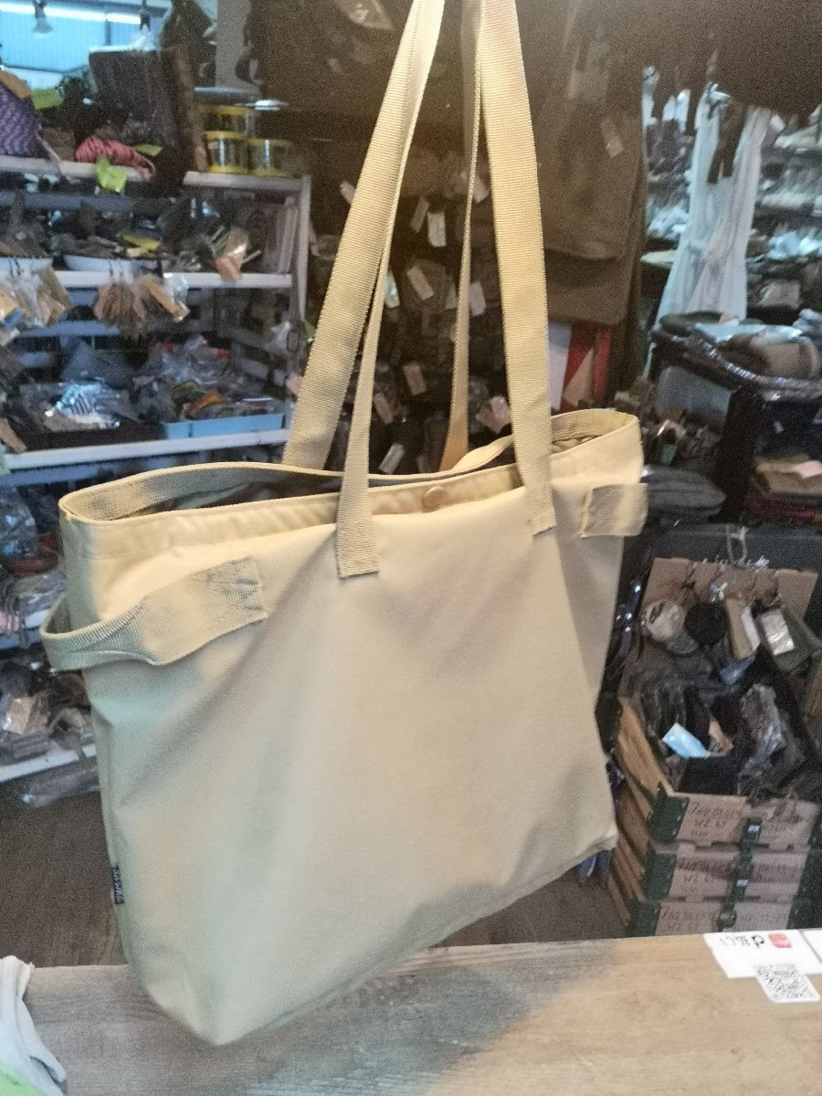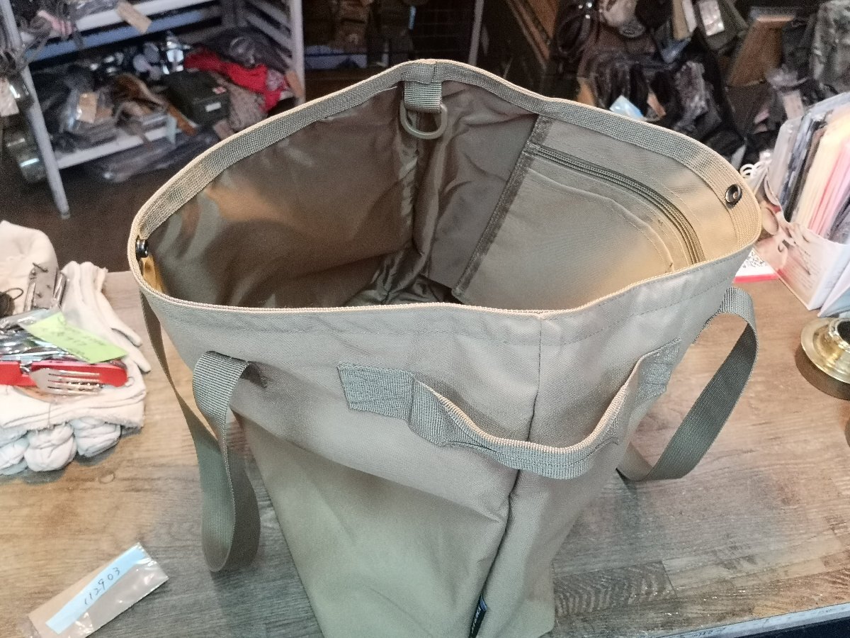 使い勝手の良いサイズと十分な収納力があり、普段使いはもちろん、アウトドアシーンなどでも活躍してくれそうです。両サイドに取っ手が付いているのも嬉しいポイントです。内部にはジップ付きの小物入れやキーホルダー、ショルダーストラップ用に使える両側のDカンもついてます。 素材:ポリエステル サイズ:W34cm×H32cm×マチ16cm。 沖縄離島を除き全国500円にて元払いいたします、落札価格にプラスでお願いいたします。