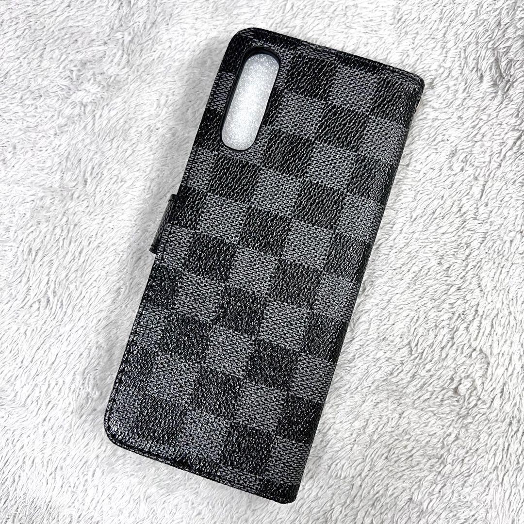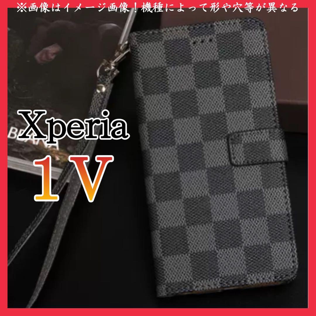 Sony Xperia 1 Ⅴケース 手帳型 黒色 チェック柄 高質PUレザー 大人気 高級感 耐衝撃 ソニー エクスペリア 1 Ⅴカバー ブラック カード収納 おしゃれ ノーブランド ストラップ付き 全面保護