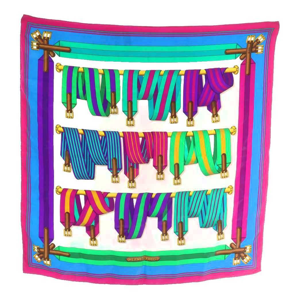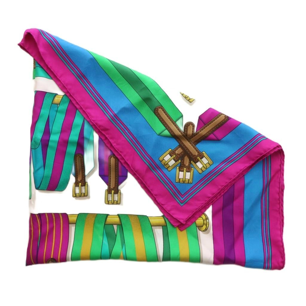エルメス HERMES カレ90 J.METZ Les Sangles サスペンダーベルト スカーフ 絹 シルク 総柄 ロゴ マルチカラー