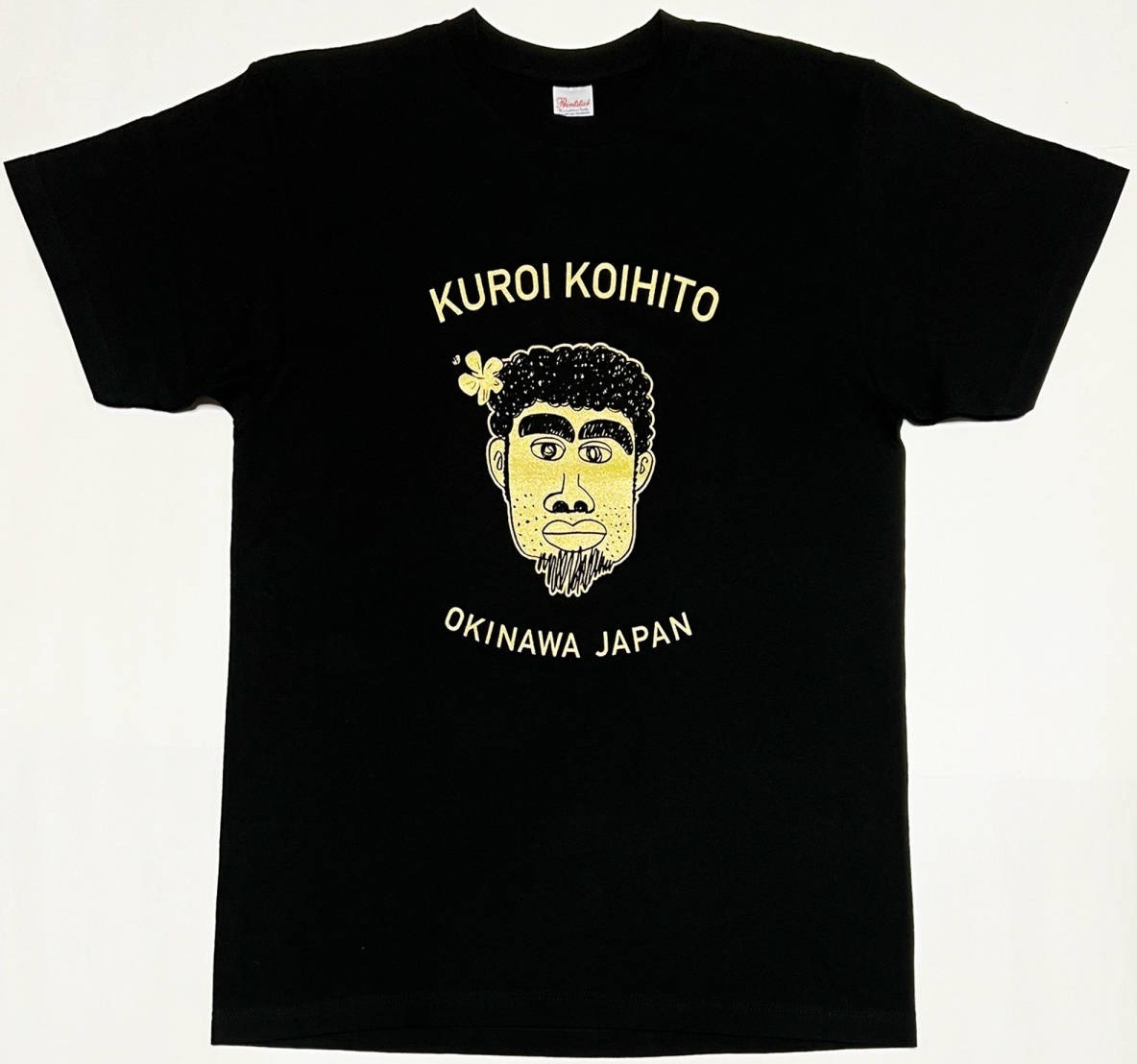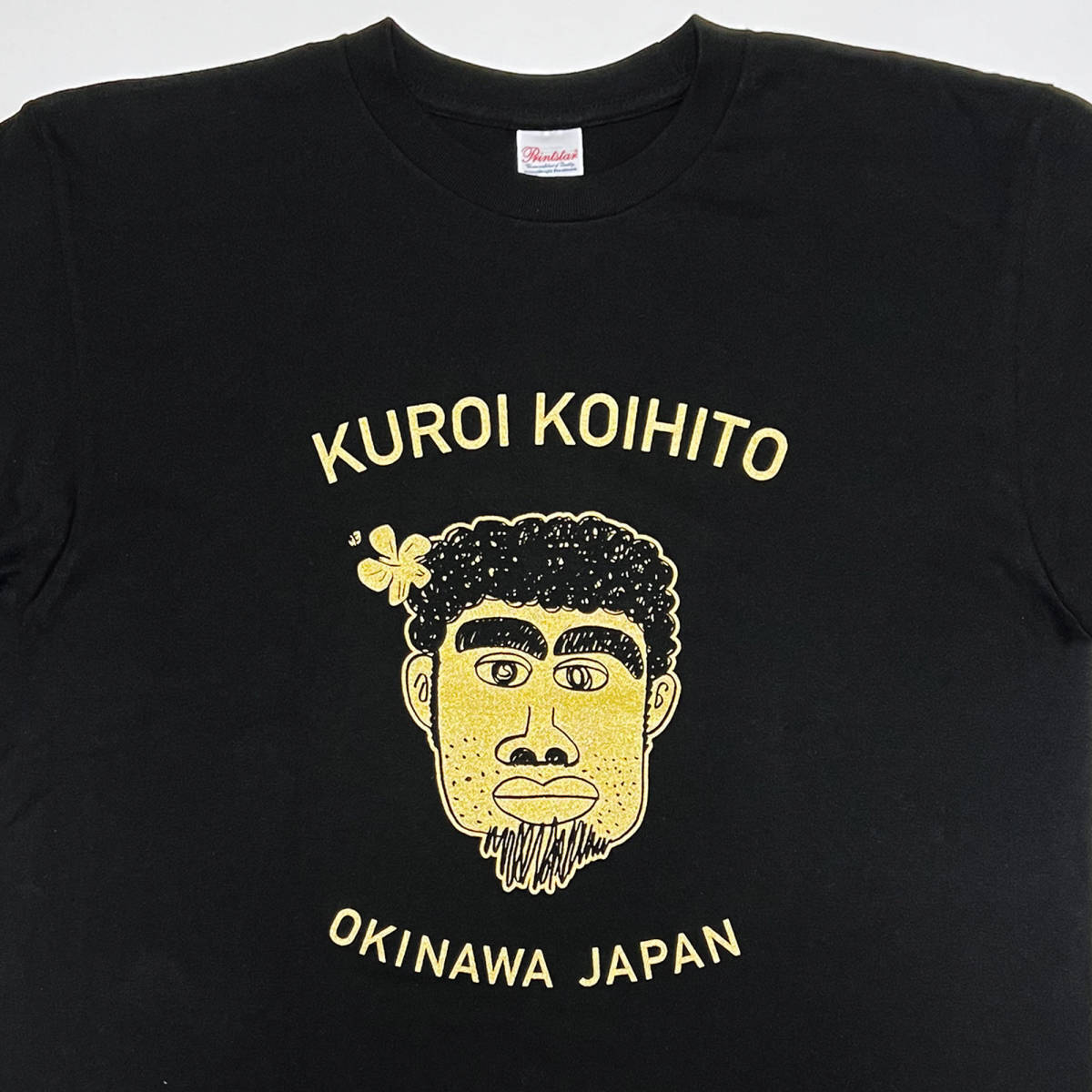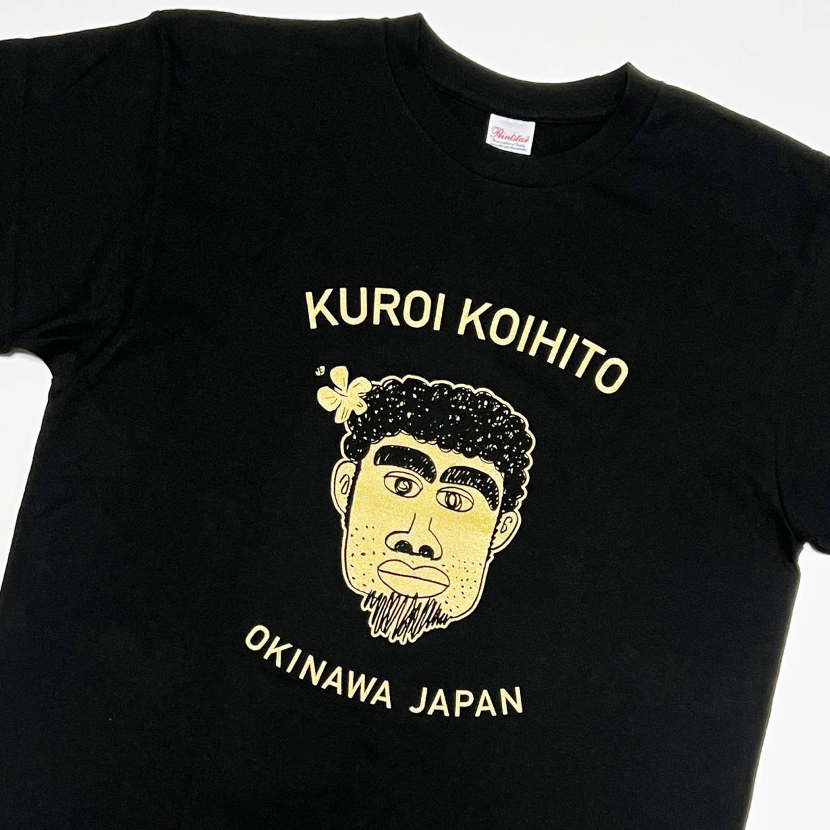 【KUROI KOIHITO/黒い濃い人】★OKINAWA JAPAN/沖縄 日本★月曜から夜ふかしでおなじみ嫁ニーオリジナル・公認Tシャツ【●新品未着用●】。表記サイズ:S、身丈:66cm、身巾:49cm、肩丈:44cm、袖丈:19cm。生地:綿/100%。