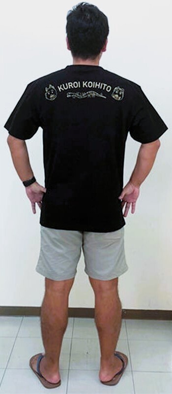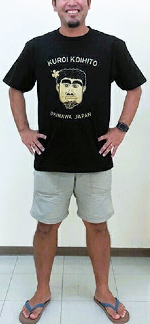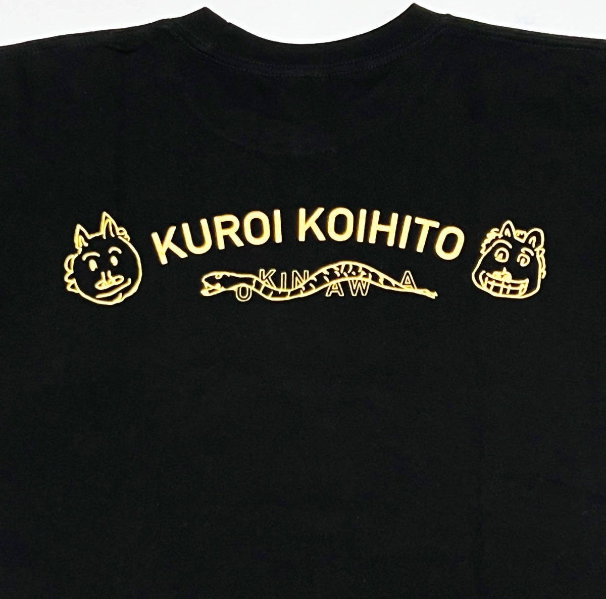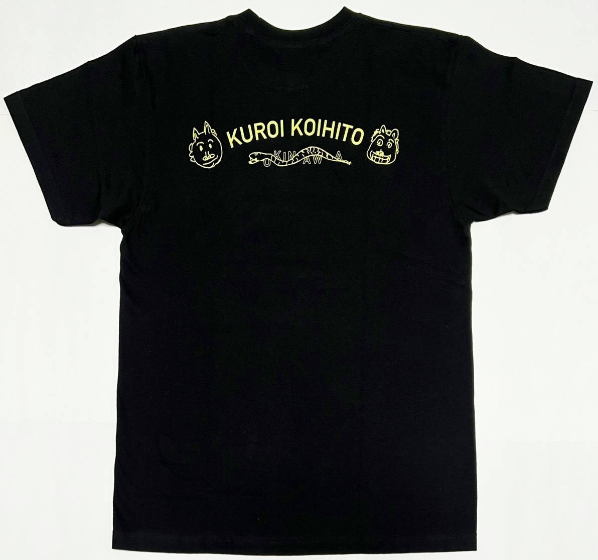 【KUROI KOIHITO/黒い濃い人】★OKINAWA JAPAN/沖縄 日本★月曜から夜ふかしでおなじみ嫁ニーオリジナル・公認Tシャツ【●新品未着用●】。表記サイズ:S、身丈:66cm、身巾:49cm、肩丈:44cm、袖丈:19cm。生地:綿/100%。