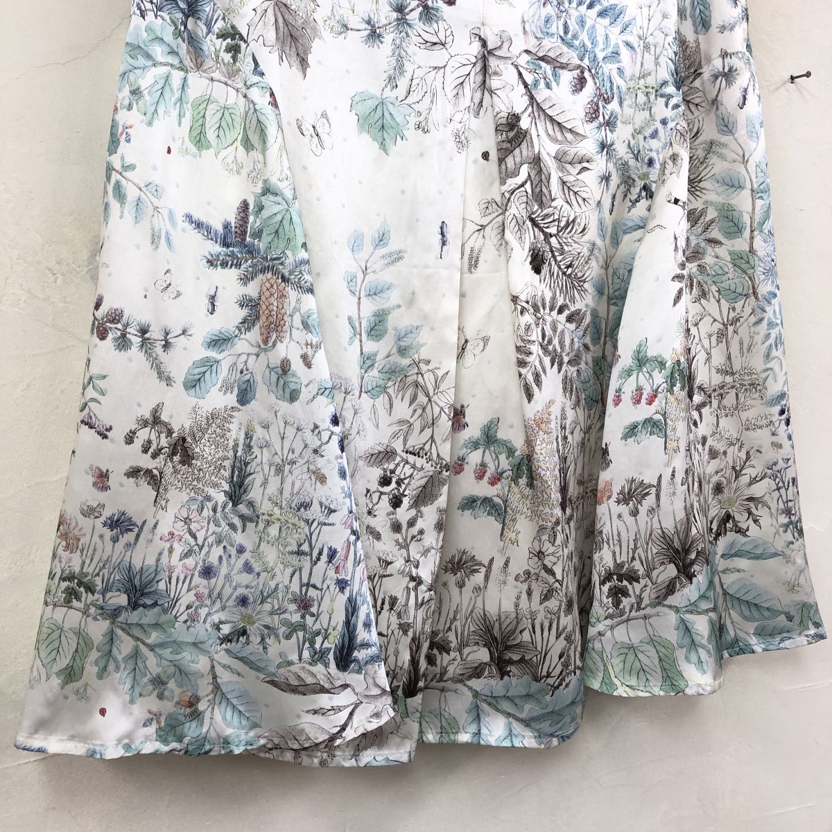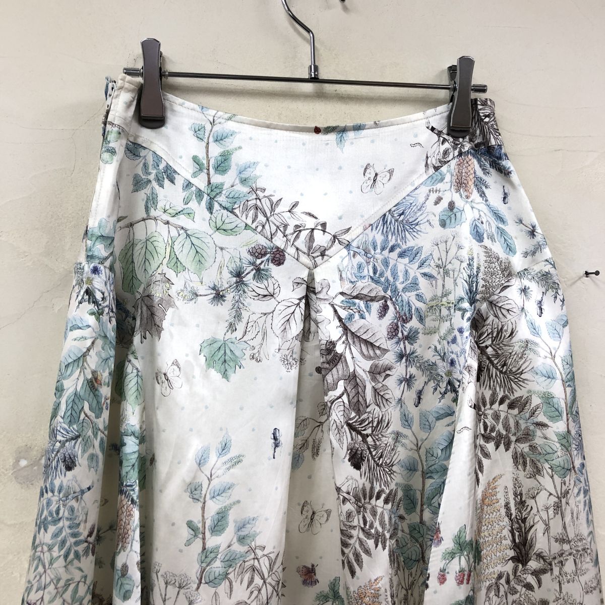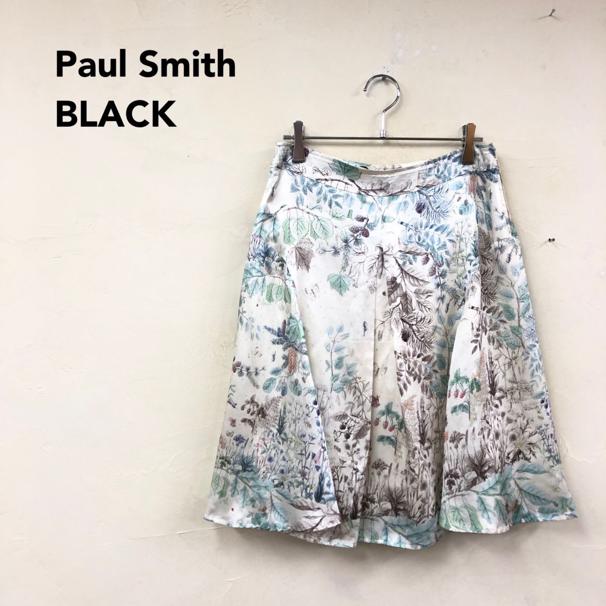 2H2423-K◆日本製 Paul Smith BLACK ポールスミスブラック ボックスプリーツスカート◆size38 オフ白 花柄 薄手 膝丈 キレイめカジュアル
