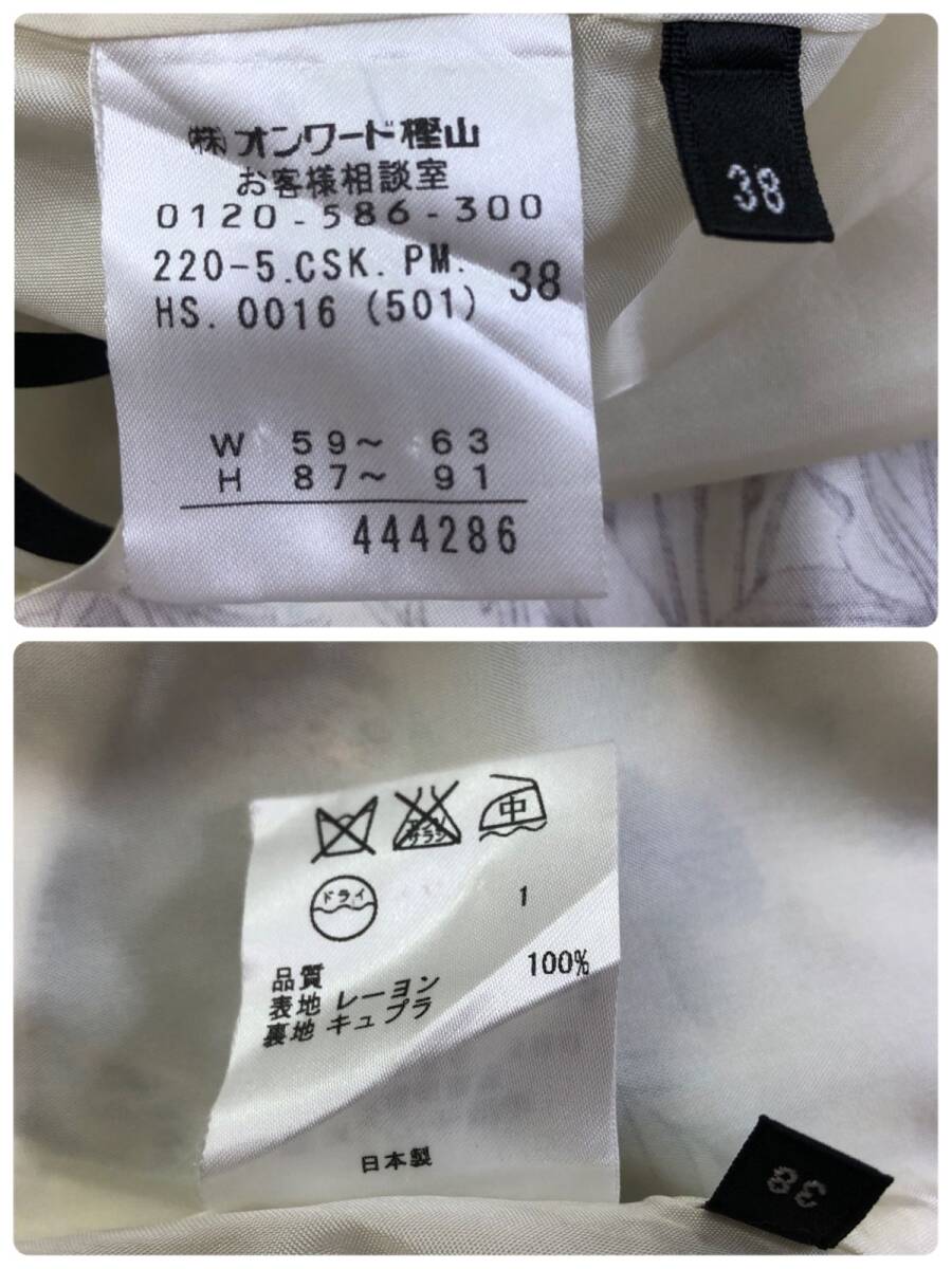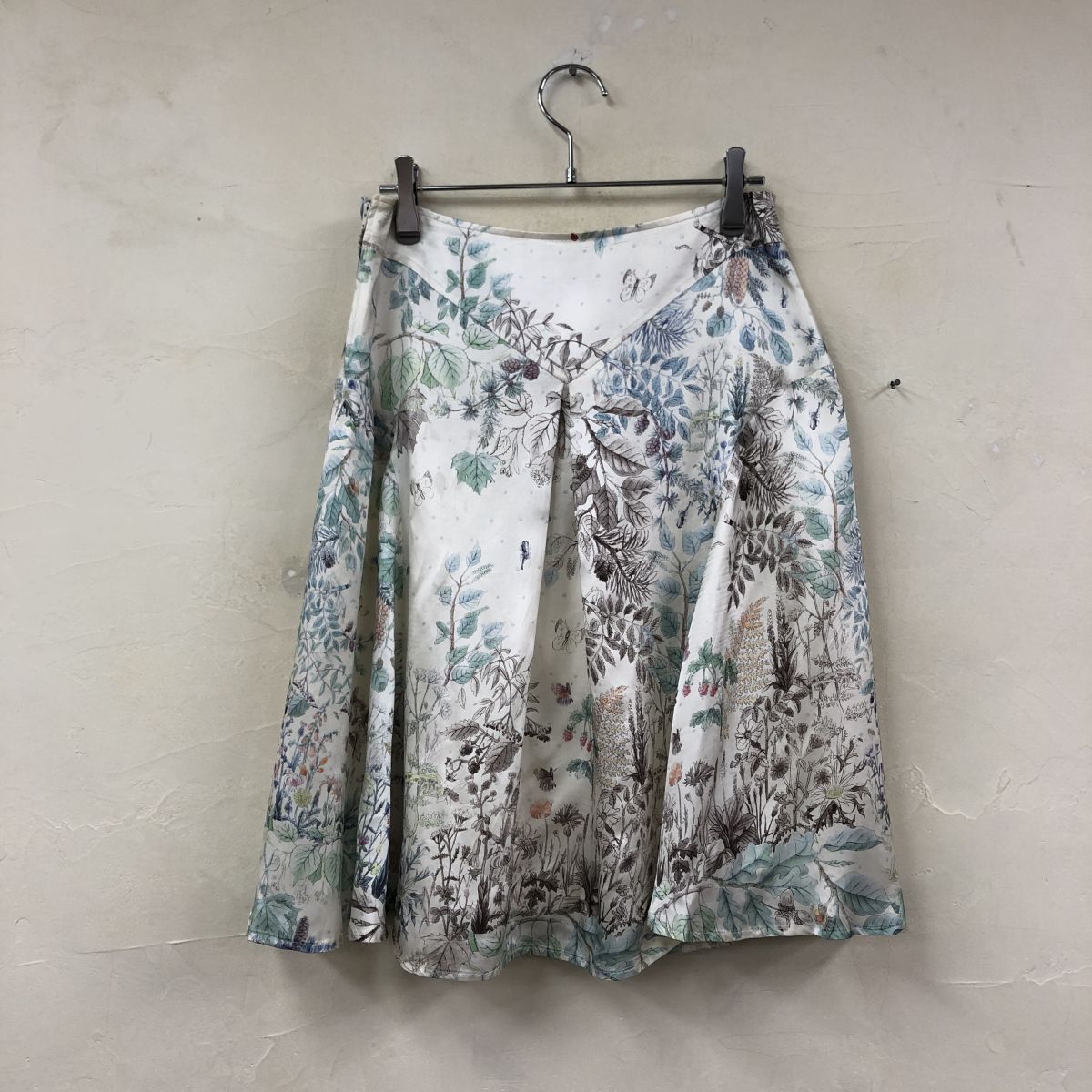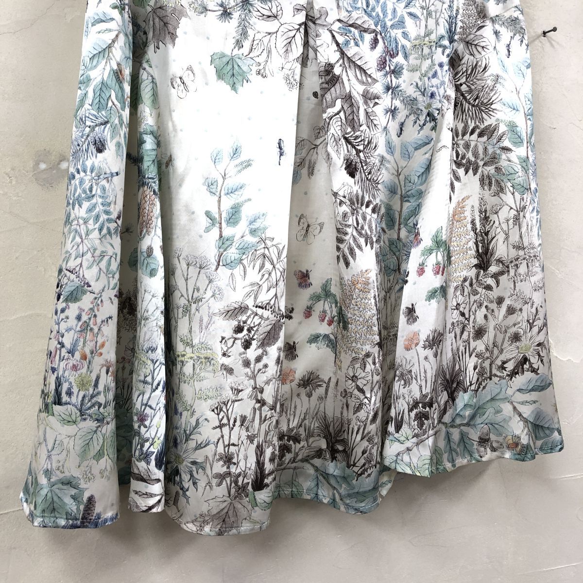 2H2423-K◆日本製 Paul Smith BLACK ポールスミスブラック ボックスプリーツスカート◆size38 オフ白 花柄 薄手 膝丈 キレイめカジュアル