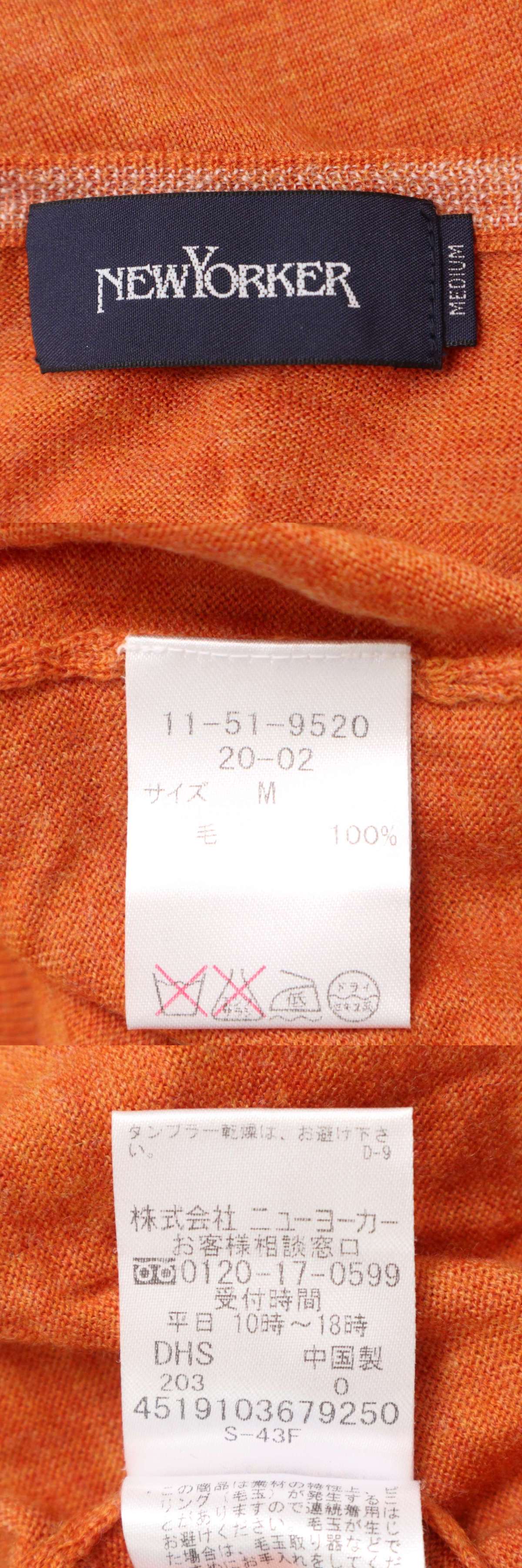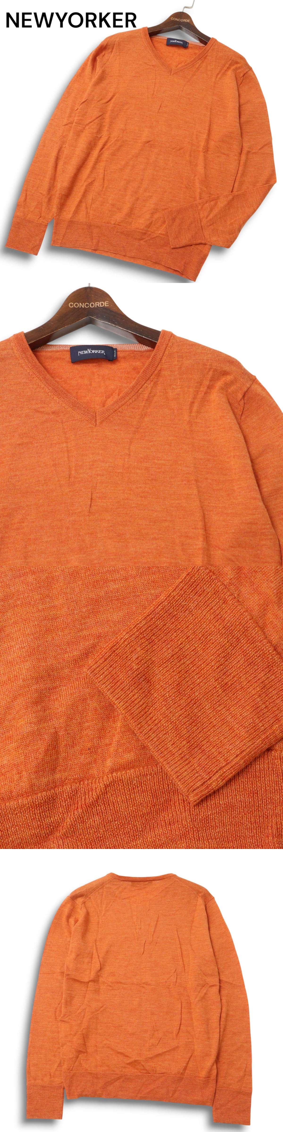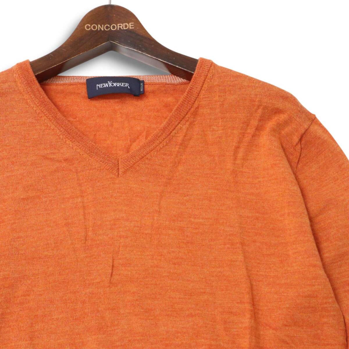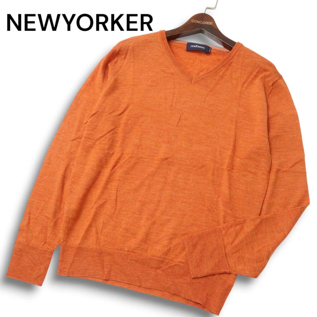 【美品】NEWYORKER ニューヨーカー 秋冬 ウール100%★ ニット Vネック セーター Sz.M メンズ