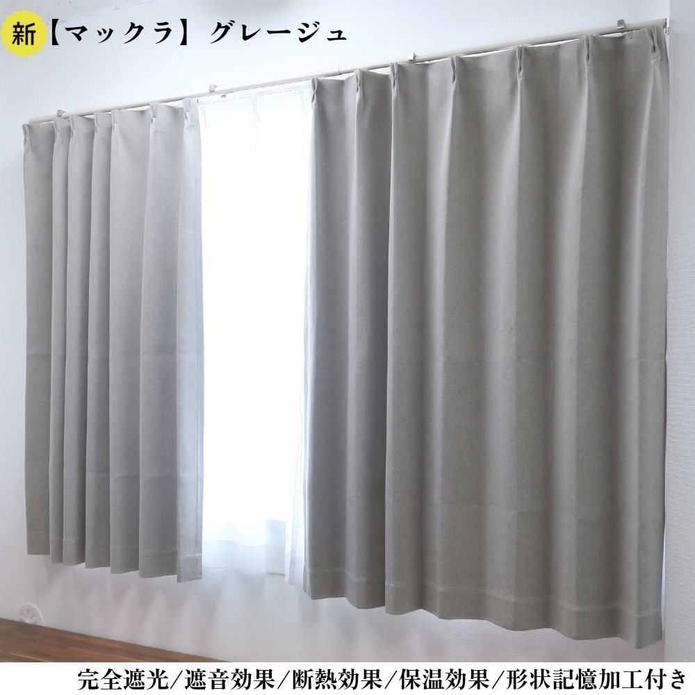 カーテン 2枚セット 完全遮光カーテン グレージュ 幅150cm×丈178cm1枚 + 遮熱レースカーテン 幅150cm×丈176cm1枚