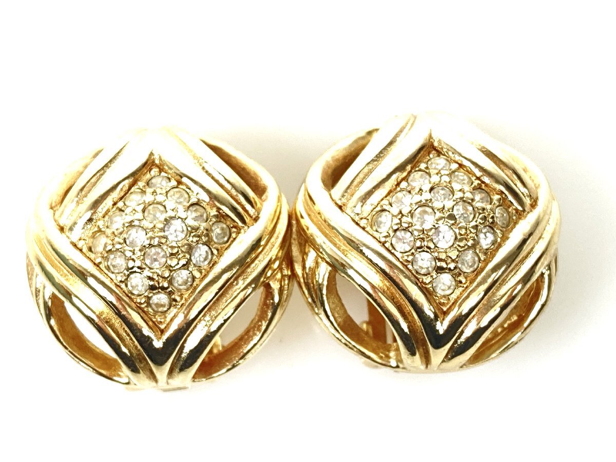 商品名 | ヴィンテージ ラインストーン ラウンド イヤリング |