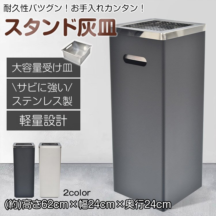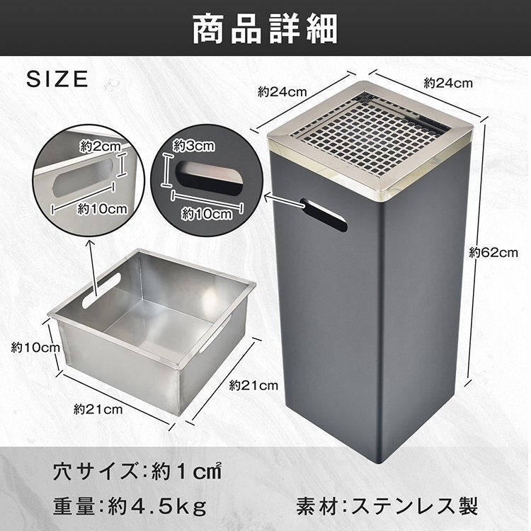 灰皿 スタンド 蓋付き 屋外 吸い殻入れ ステンレス 大容量 タバコ 深め受け皿 ゴミ捨て防止 屋外用 業務用 倒れにくい 角型 スリム sg257