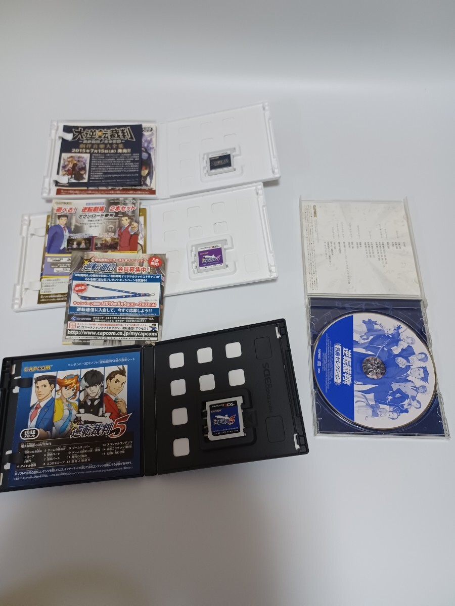 「家にあった逆転裁判のシリーズまとめて。CDお付けいたします。特典のコードなど入っていますが、使えるか確認しておりません。