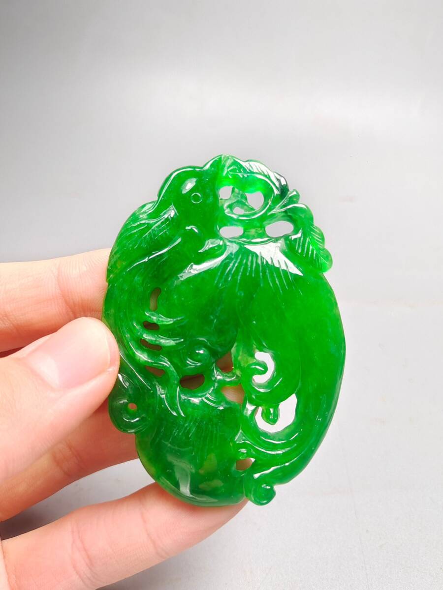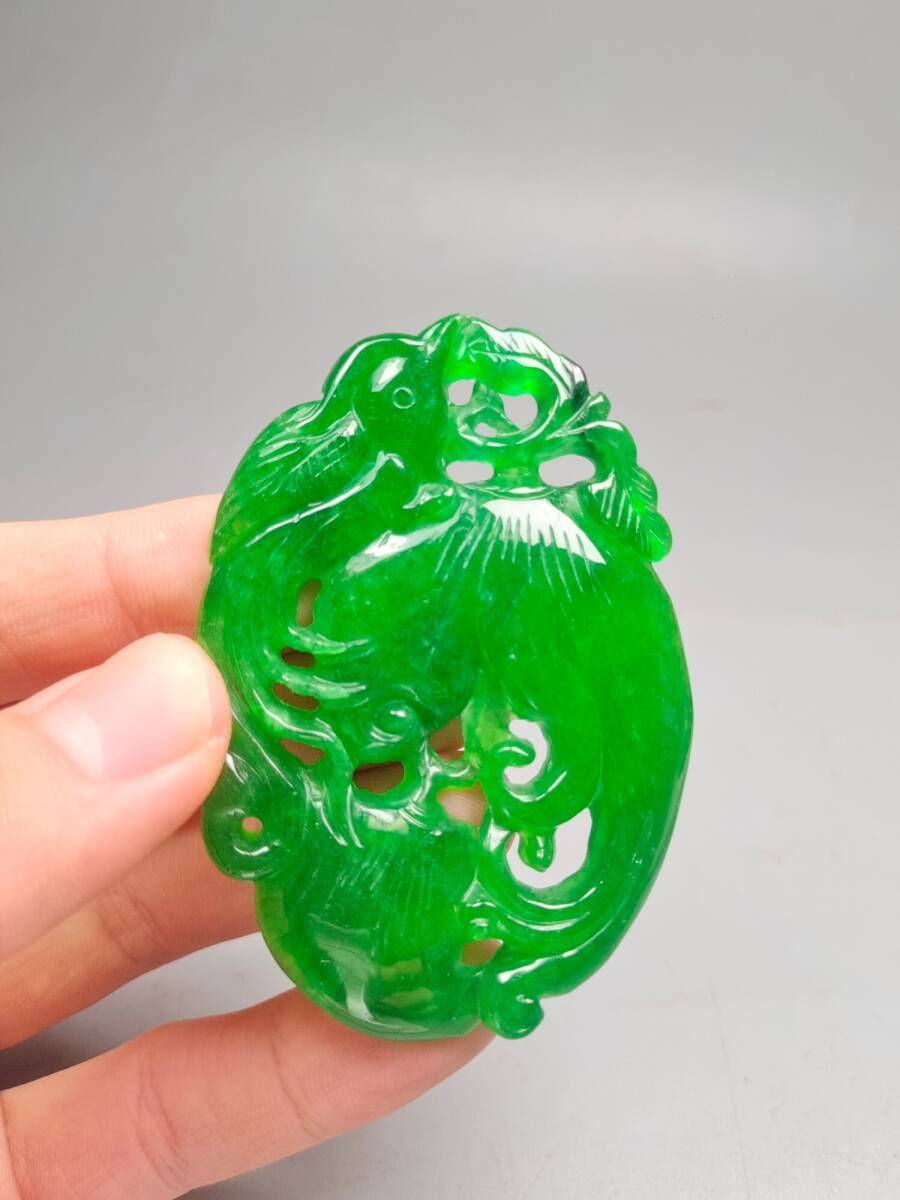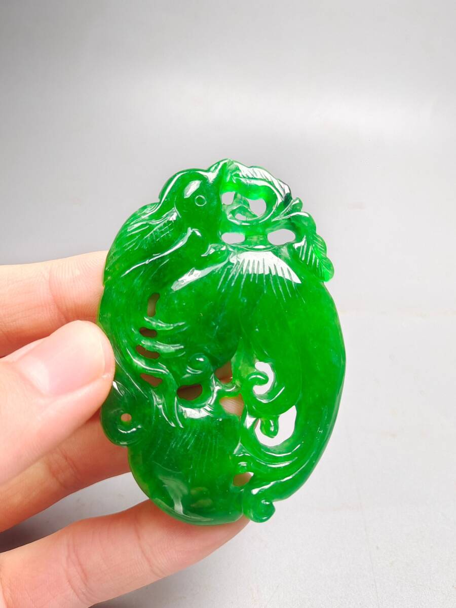 『清・翡翠細密彫・沁色自然・盛世鳳凰ペンダント・根付・裝身具』極細工 置物 古賞物 中国古玩 中国古美術