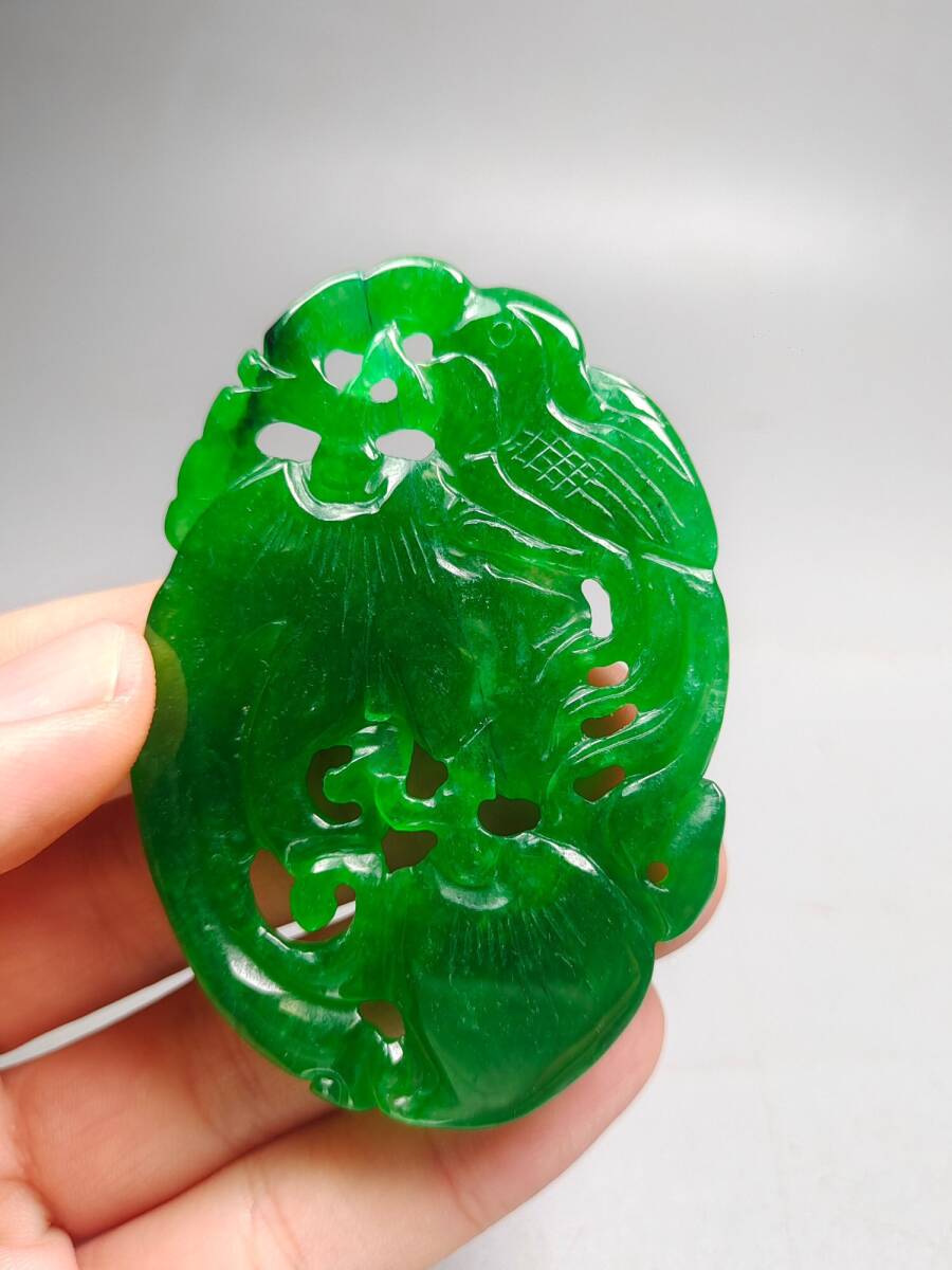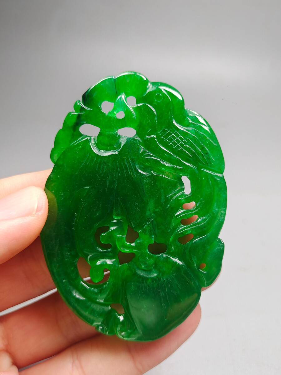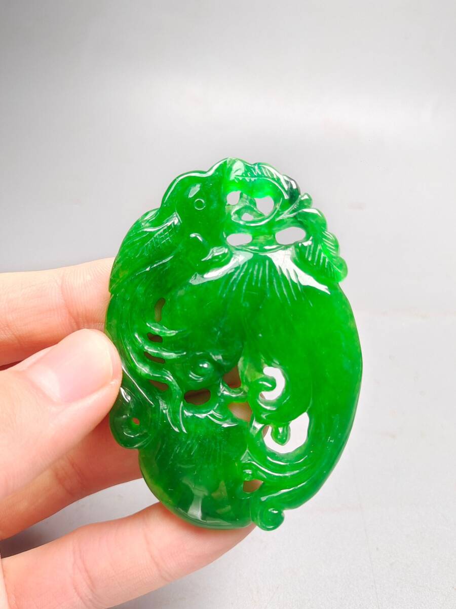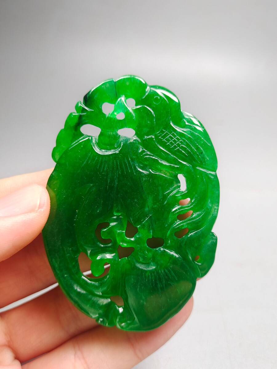 『清・翡翠細密彫・沁色自然・盛世鳳凰ペンダント・根付・裝身具』極細工 置物 古賞物 中国古玩 中国古美術