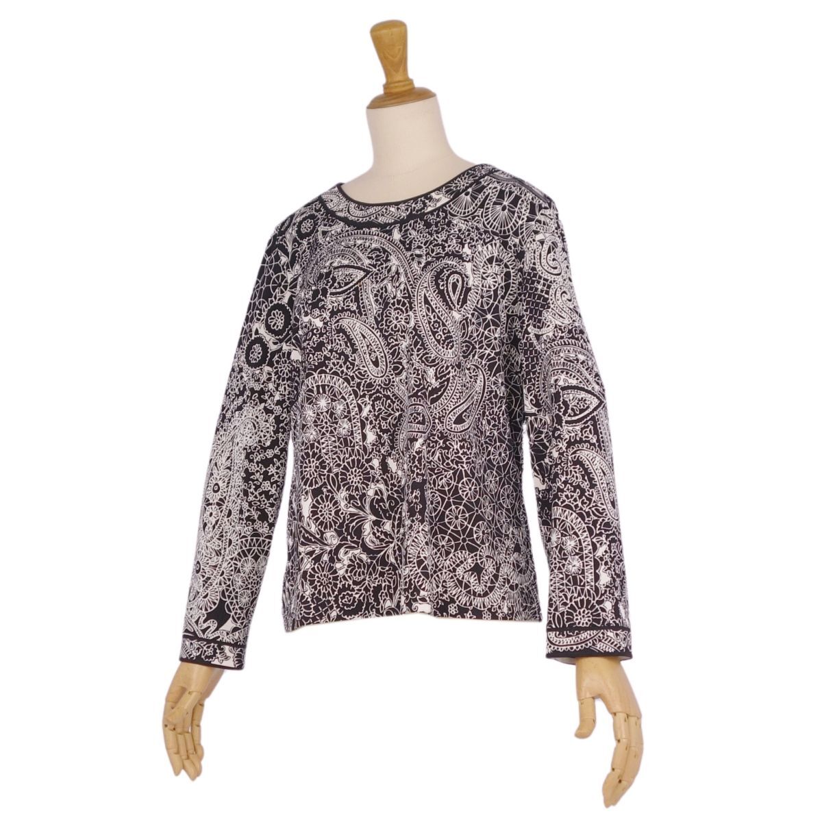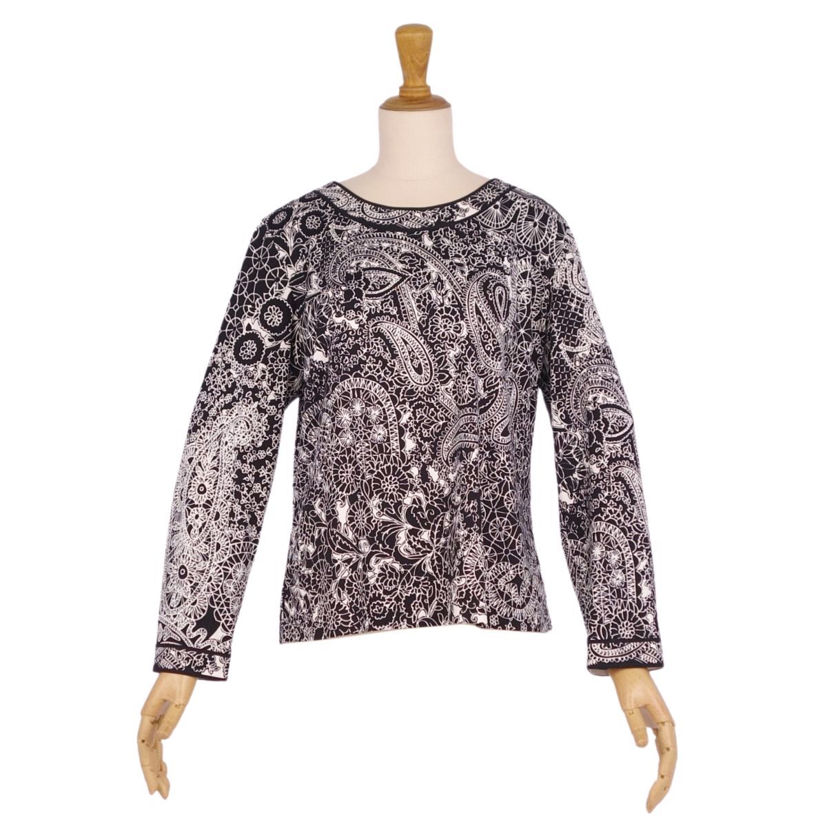 | 美品 レオナール LEONARD FASHION シャツ ブラウス ロングスリーブ 長袖 総柄 ジャージー トップス LLブラック/ホワイト |