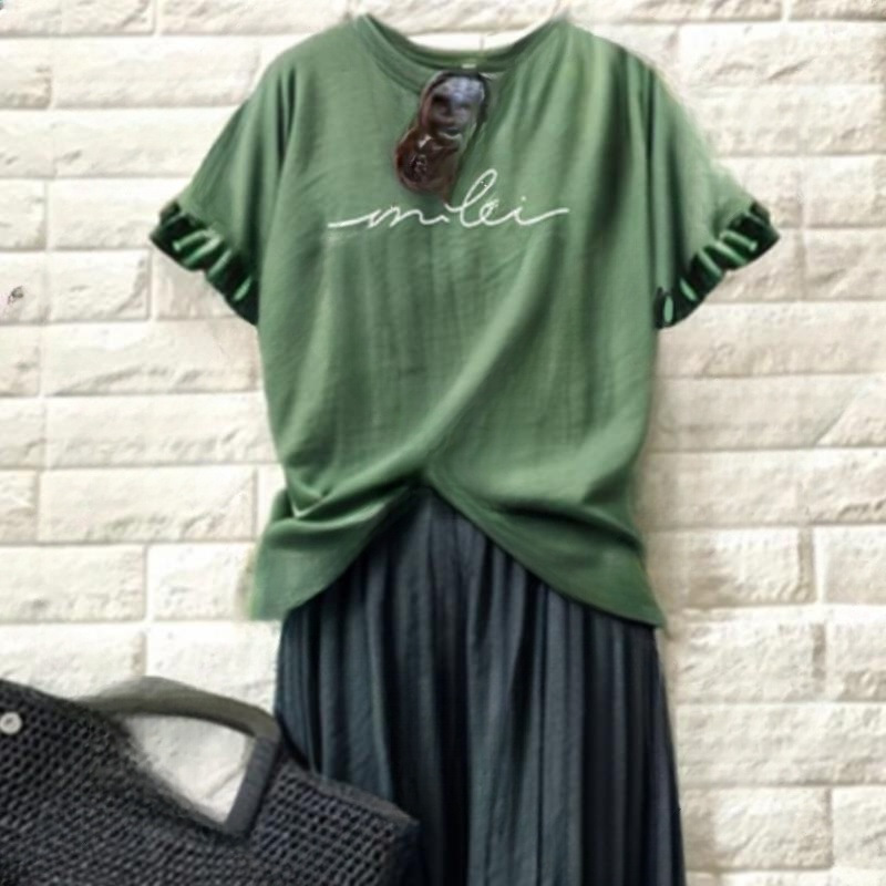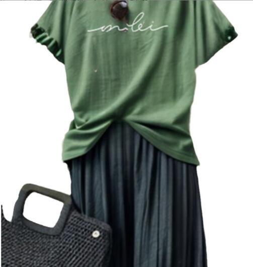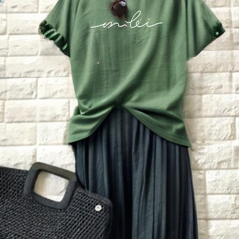 「同梱1万円送料無料」夏物緑のさらっとTEEと黒の細プリーツスカート2点セット新品LサイズフリーサイズマキシスカートとTEEのセットアップ