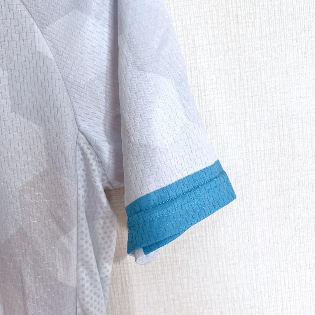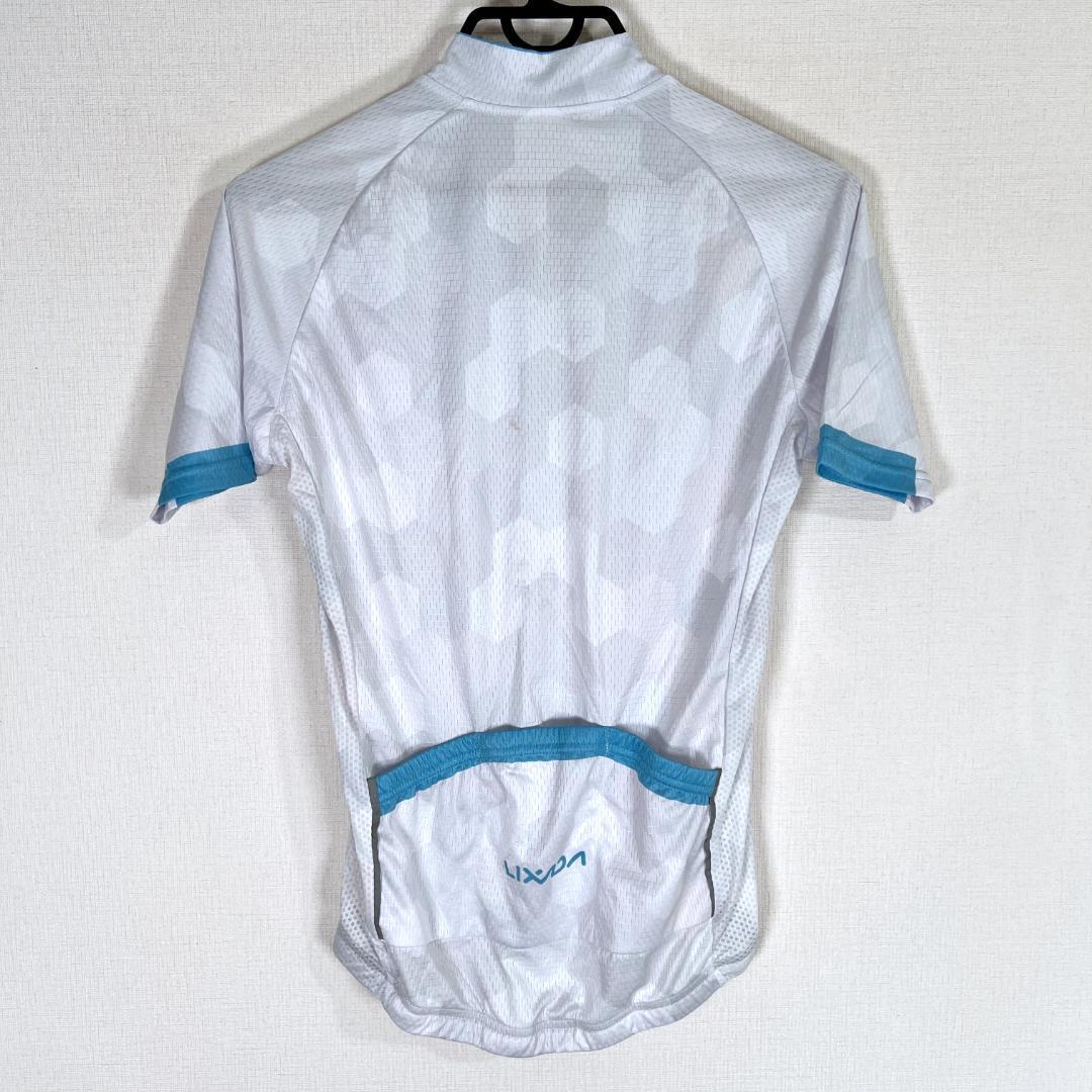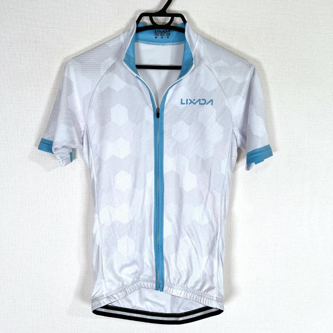 ホワイト×水色 ブルー系の半袖サイクルジャージ トップスです。中古品ですが目立つような傷や汚れもなくまだまだ使っていただけます。古着 リクサダ