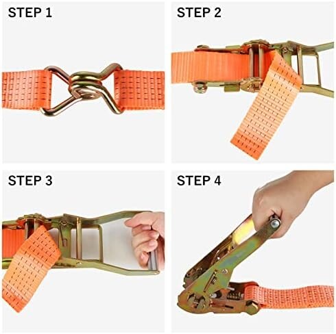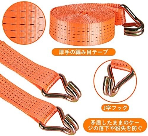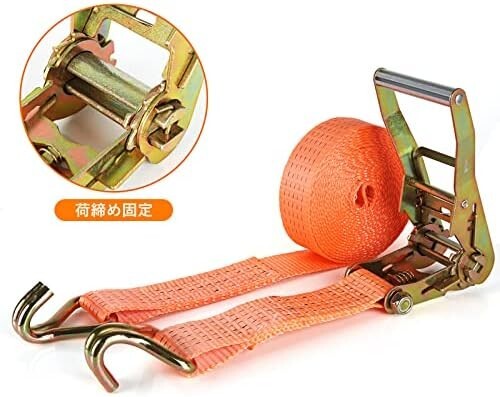 【ラチェット式・Jフック・簡単に締め付け】ラチェットバックルにより、小さな力で大きな締め付け力が得られ、あらゆる荷物もタイプを選ばずしっかりとホールドできます。