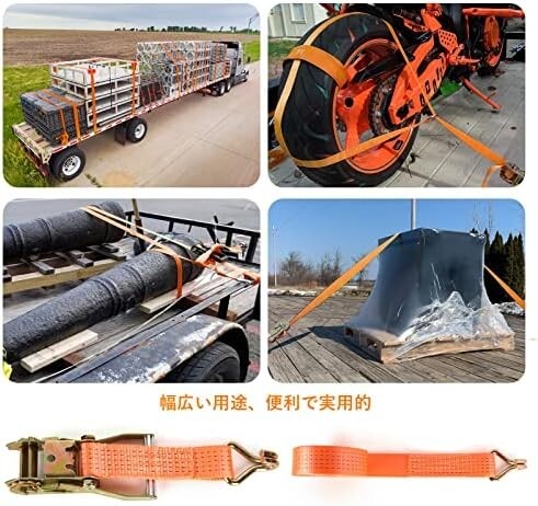 【上質な材質・優れた耐久性】荷締めベルトは本体が高強度のポリエステル原糸100% を使用し、耐久性は抜群です。