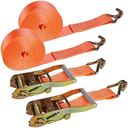 RILIHII 【2本セット】ラッシングベルト 荷締めベルト ラチェット式ベルト 長さ6m 幅50mm 破断荷重5000kg 5Ton Jフック 荷締め機 ラチェット式 トラック用ベルト固定用 締付固定 引越し運搬用 荷物の固定 荷崩れ防止 トラック輸送(オレンジ)