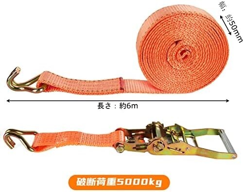【新品送料無料】RILIHII 【2本セット】ラッシングベルト 荷締めベルト ラチェット式ベルト 長さ6m 幅50mm 破断荷重5