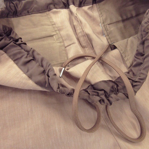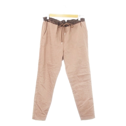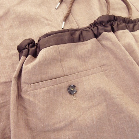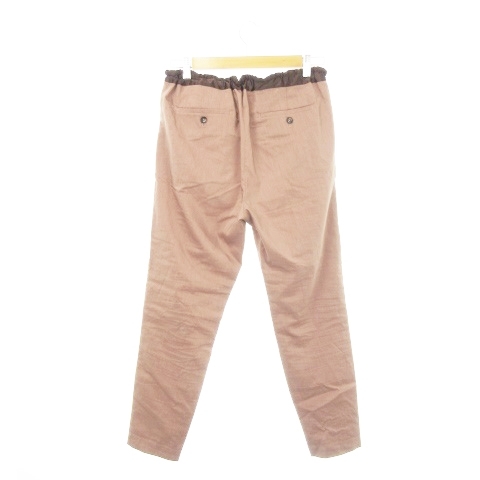 グリーンレーベルリラクシング ドロストテーパードパンツ イージー リネン混 麻 ストレッチ 40 L 茶 ペールブラウン /AH3 レディース