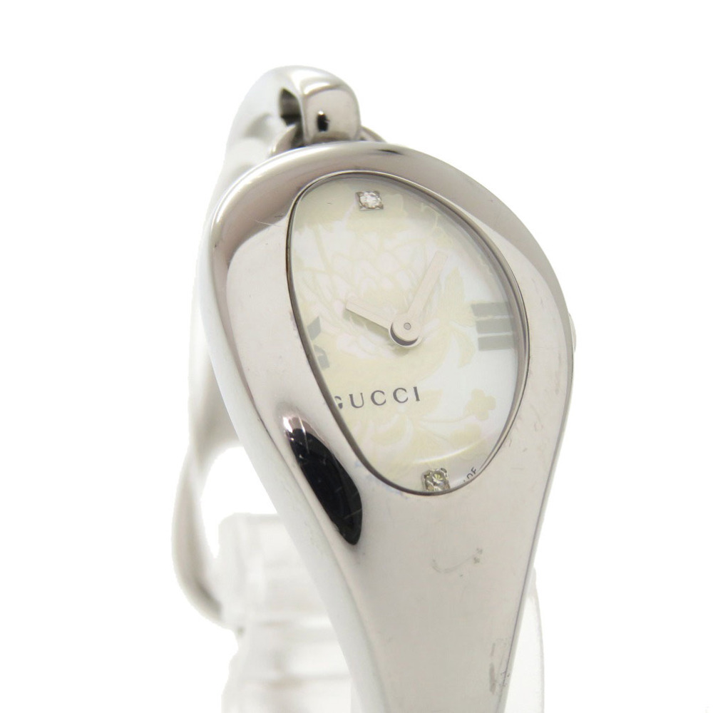 グッチ ホースビット 103 2Pダイヤ SS ホワイトシェル シルバー クオーツ 腕時計 白文字盤 0563 GUCCI