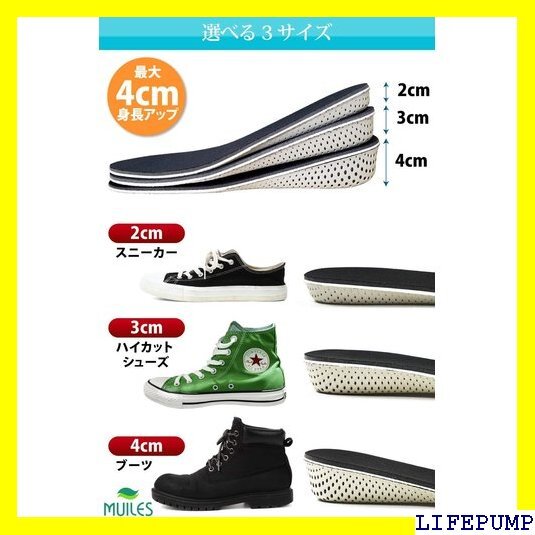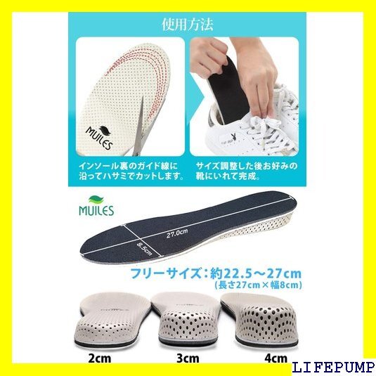 シークレットインソール 高さ3サイズ 2cm/3cm/4cm インソール 身長アップ サイズ調整 22.5cm~27.0cm 通気性 疲れにくい 男女兼用 Muiles 2cm×1組 862
